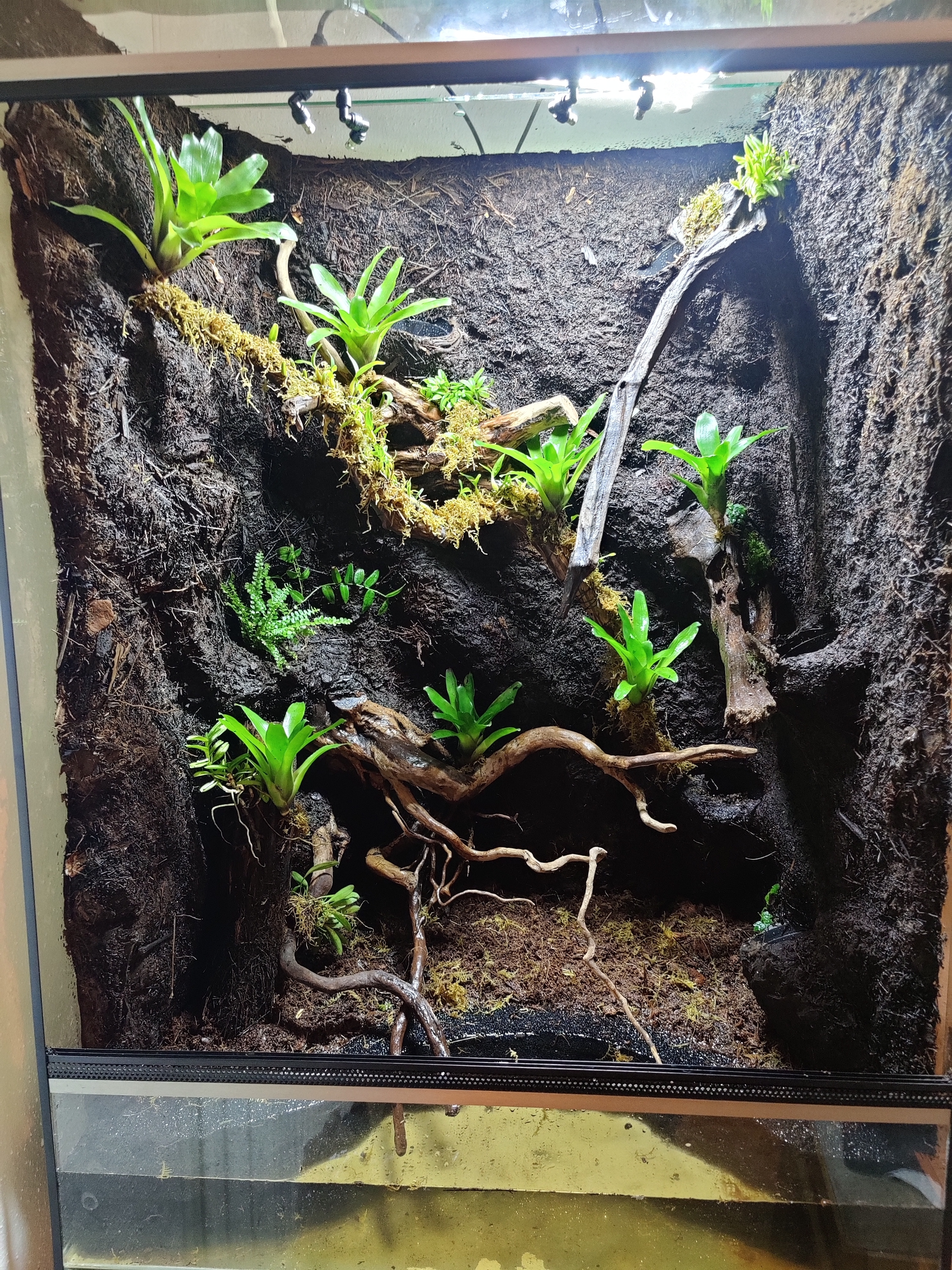 har gjort några småjusteringar och tappat vattnet, men vattnet som rinner ner för grenen fungerar som det ska. Jag ser fram emot att det har växt och mossan kommit fram