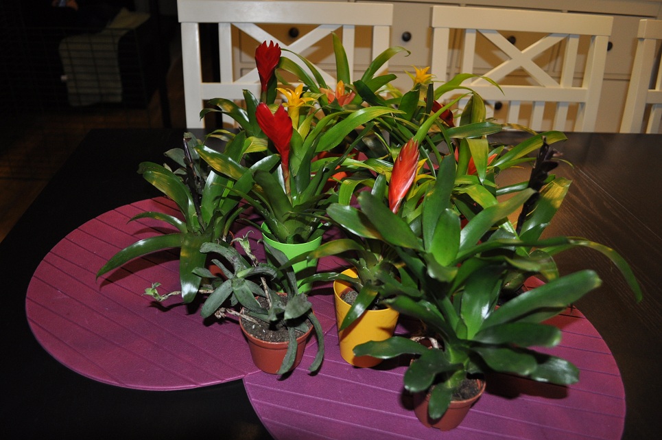 jag ett gäng småbromelior i min specialaffär(Guzmania minor,Nidularium citrina och några Vriesor alla är minivarianter). Håller på med det sista i exoterrat, snart dax för växterna.Lägger in bilder på bromeliorna,det kommer snart bilder på bygget.