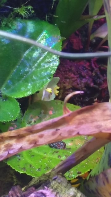 Denna lilla blomma dök upp idag. Tillhör de ca 4 cm runda bladen. Jag har inte planterat det själv så måste ha kommit in med något annat.....Men vad är det?