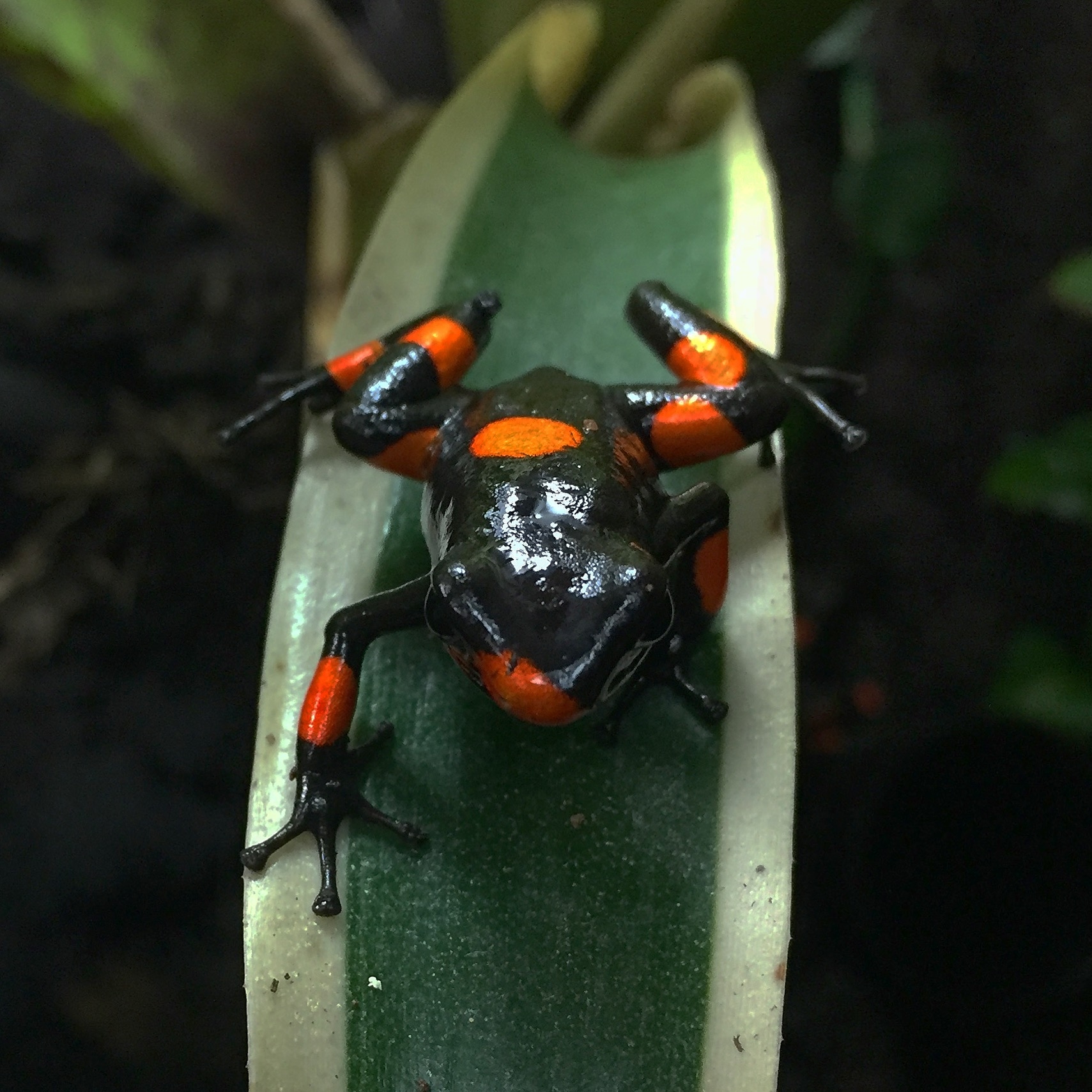 Namntillägg:Denna variant brukar kallas Oophaga histrionica Bullseye pga den markanta stora punkten många individer brukar visa på ryggen eller, efter lokaliteten, Oophaga histrionica Tatamá.