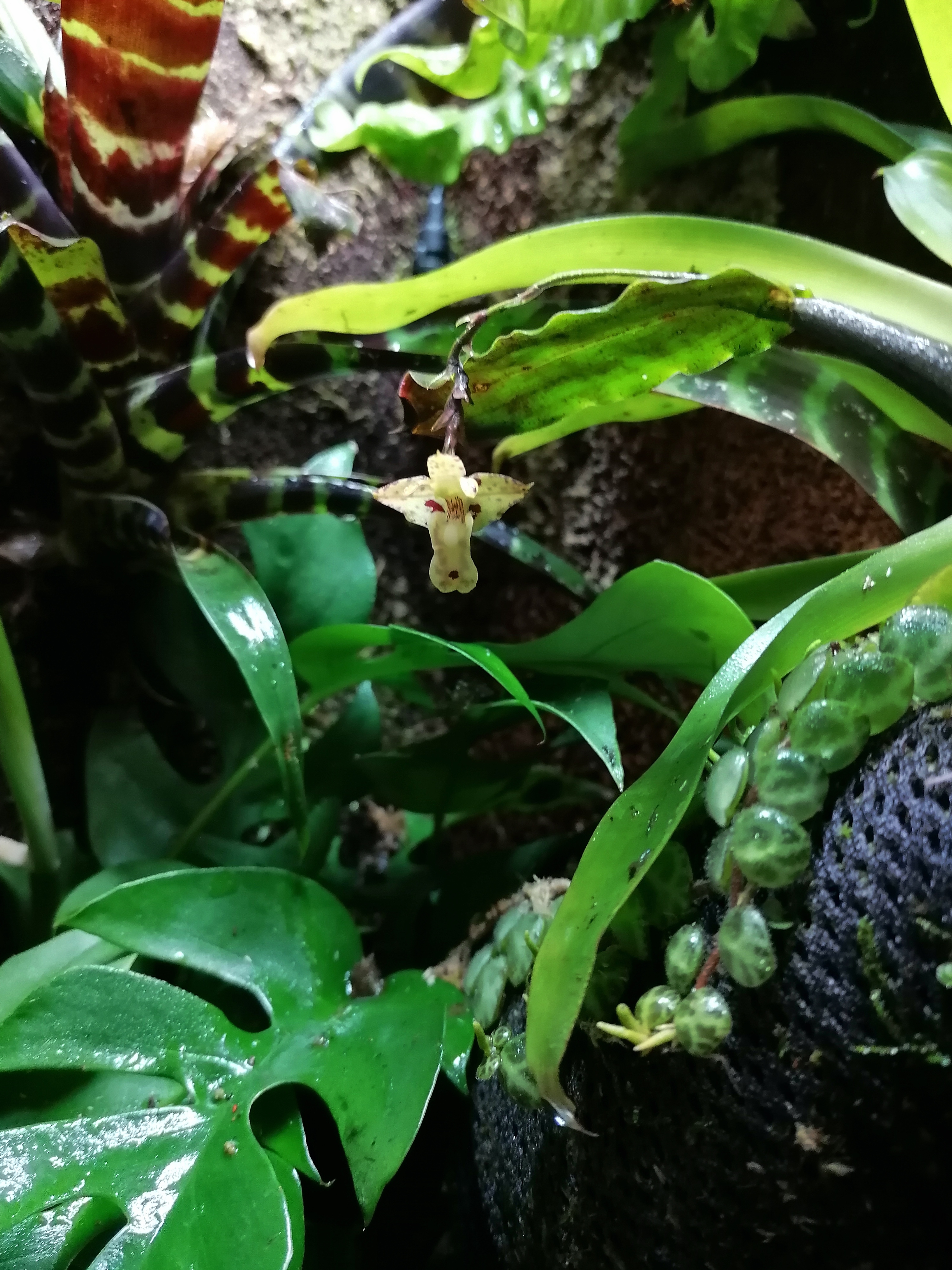 Nu blommar Dichaea tenuis här hemma. Väldigt graciöst utseende vilket också det latinska namnet skvallrar om. Ca 7 mm stor blomma.