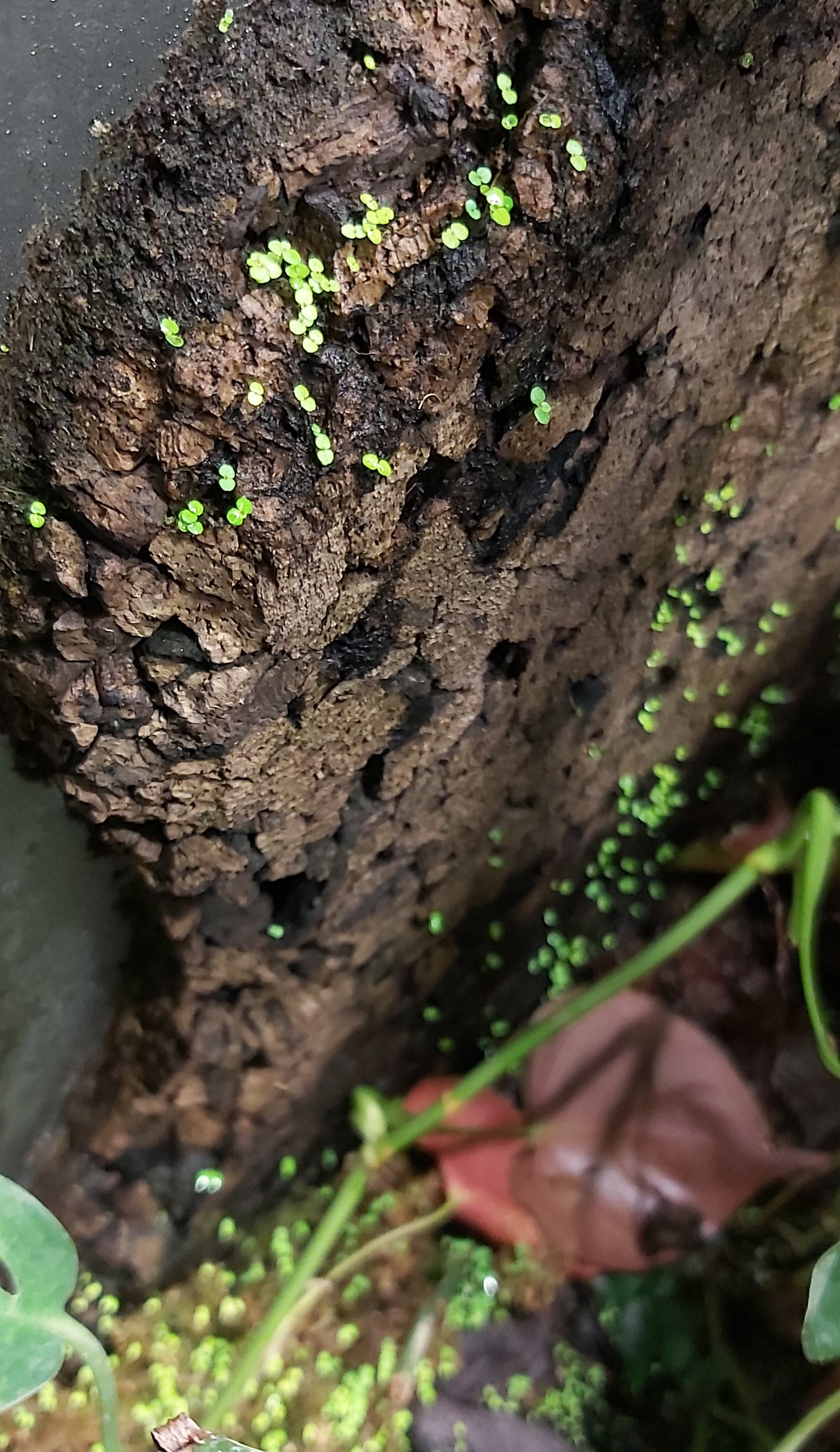 Kul när det dyker upp massor av 2 hjärtblad i terrariet. Om jag inte minns fel så har jag haft en begonia som blommat där. Men vilken???