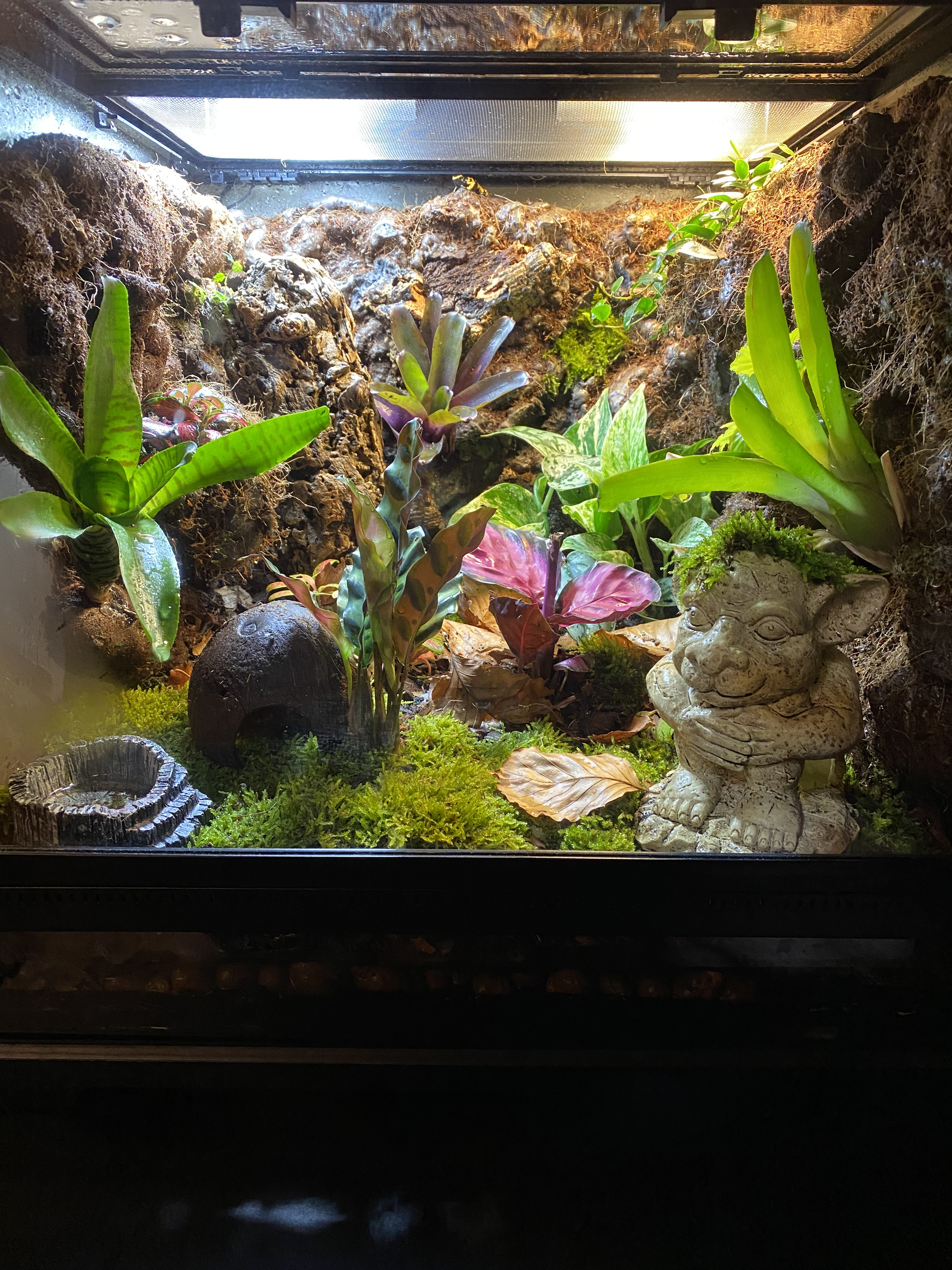 Aldrig ägt ett terrarium tidigare men alltid gillat att skapa och bygga saker. Så jag tänkte jag prövar, litet terrarium, färgglad groda, kan väl inte gå fel när man lägger fram idén för frun.
