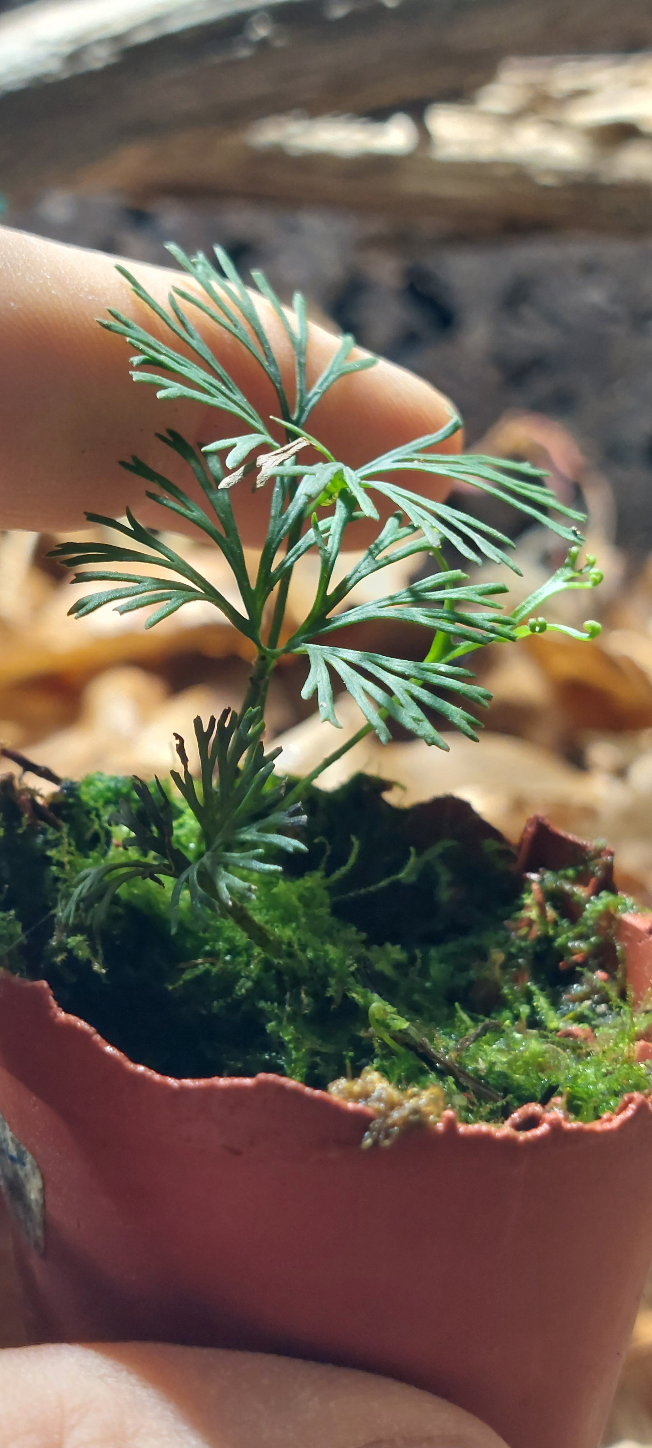 Lite olika växter bla denna mini ormbunke, Elaphoglossum peltatum.