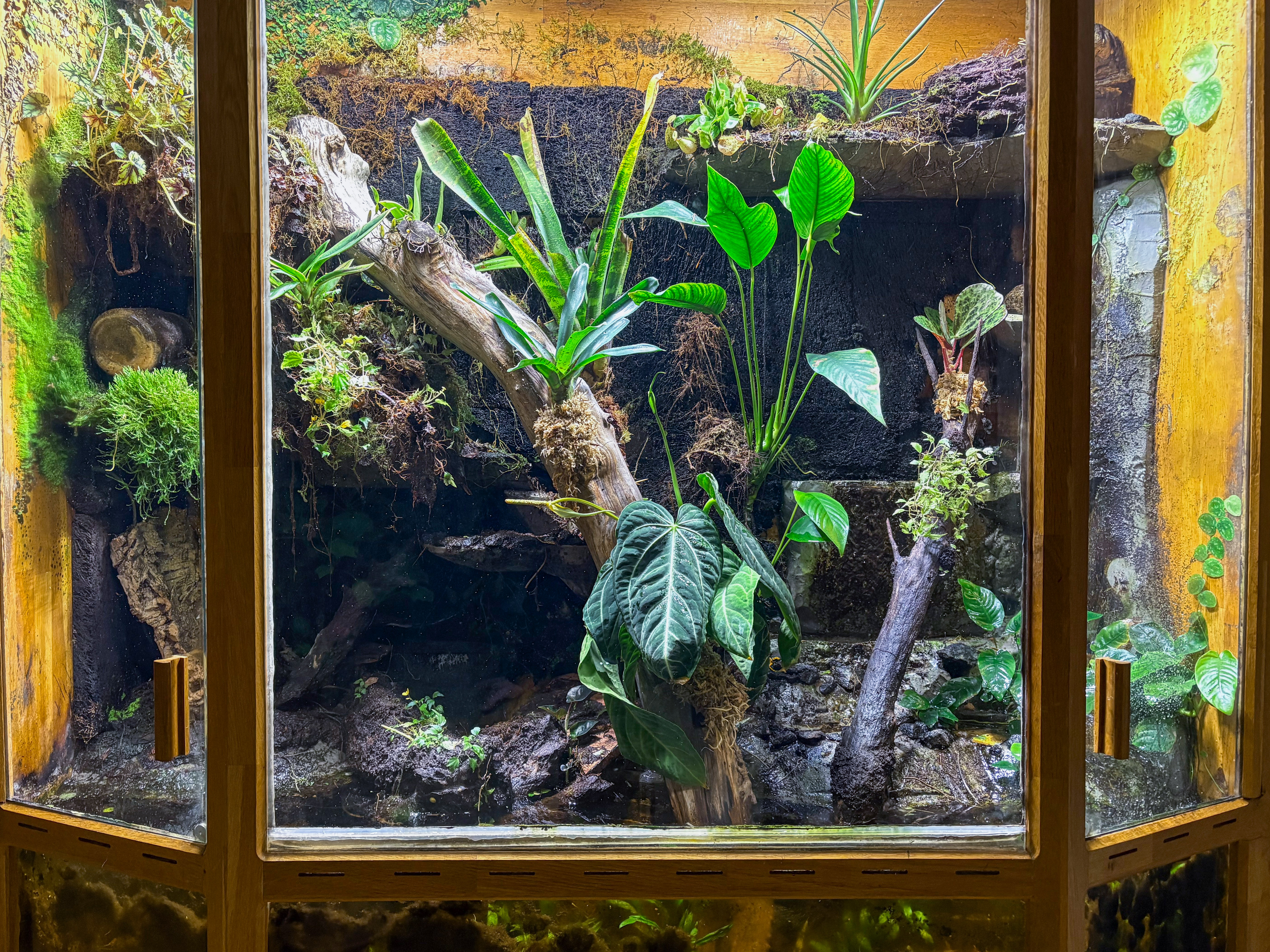 Jag håller D. tinctorius Azureus, D. leucomelas Guyana Banded, P. vittatus, E. anthonyi Rio Daule/Göteborg, O. pumilio Punta Laurel, R. variabilis Franska Guyana, R. reticulata och R. sirensis Contamana. Utöver grodorna har jag även en ögonfransgecko, jungfrugeckor och några fågelspindlar.