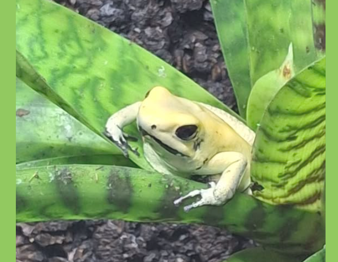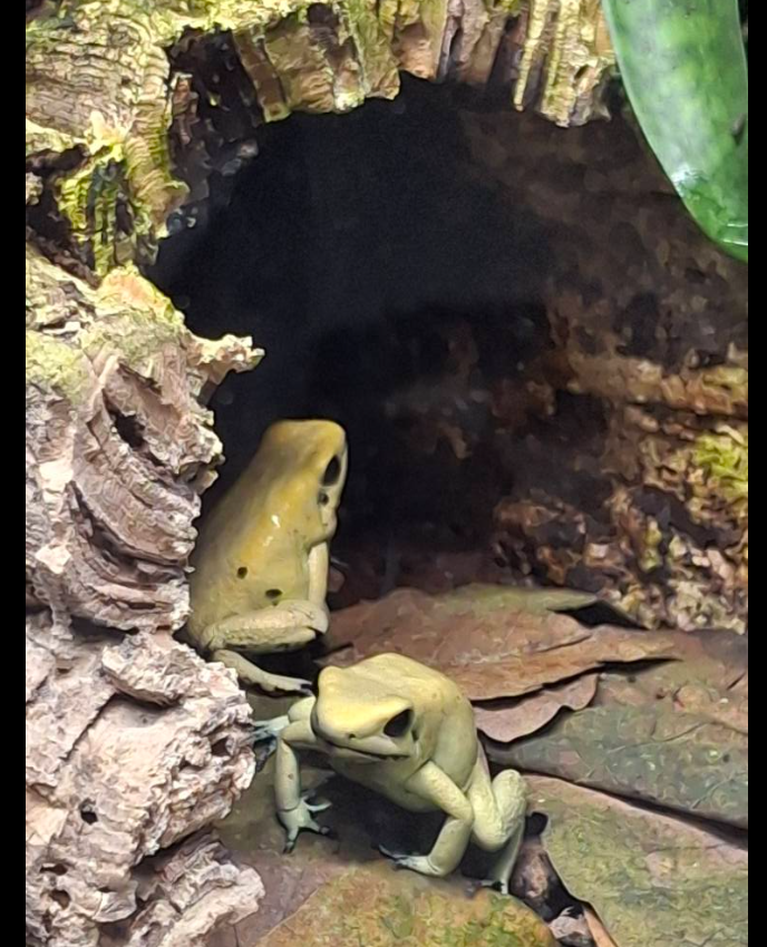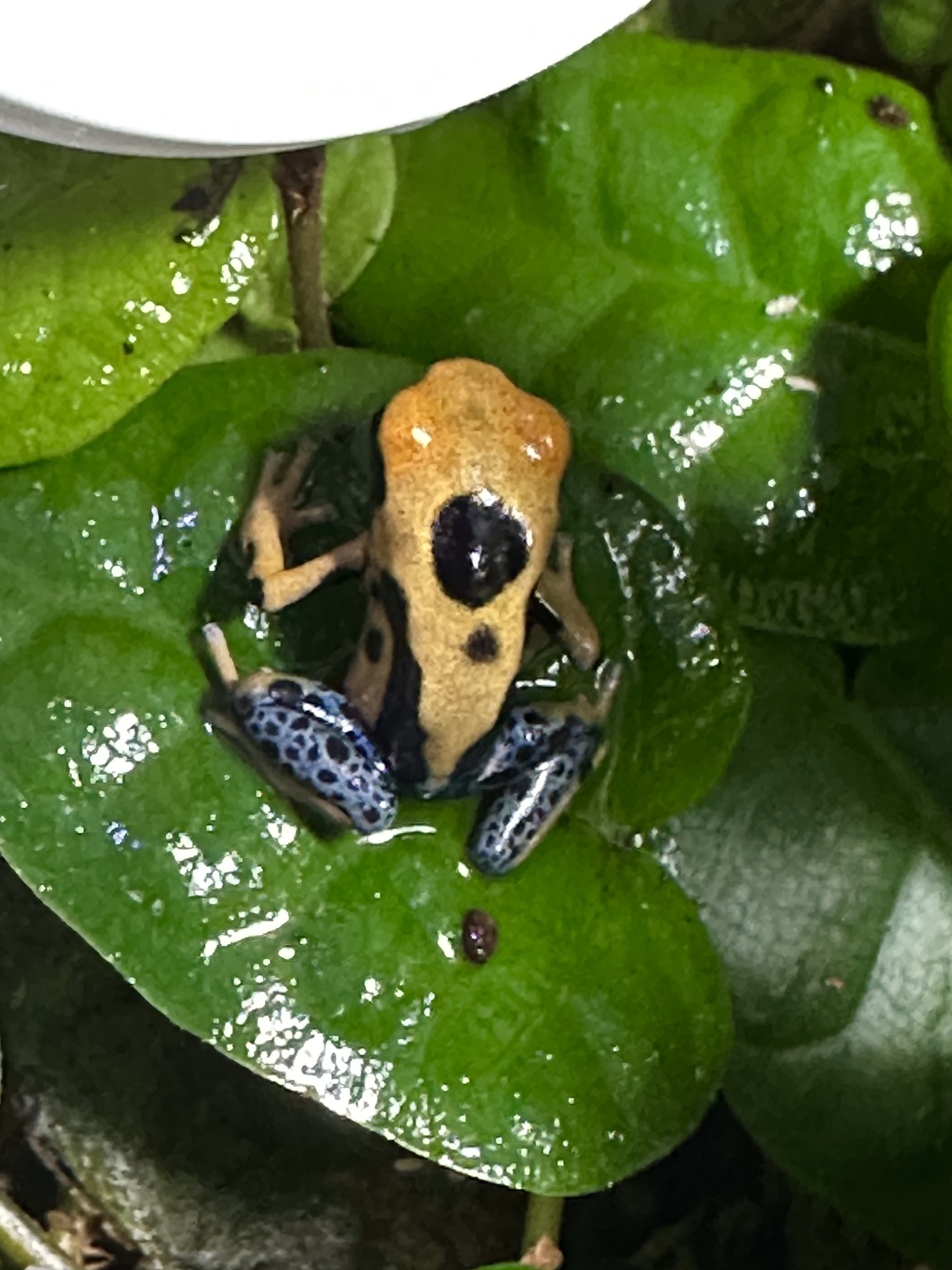 Jag håller D. tinctorius Azureus, D. leucomelas Guyana Banded, P. vittatus, E. anthonyi Rio Daule/Göteborg, O. pumilio Punta Laurel, R. variabilis Franska Guyana, R. reticulata och R. sirensis Contamana. Utöver grodorna har jag även en ögonfransgecko, jungfrugeckor och några fågelspindlar.