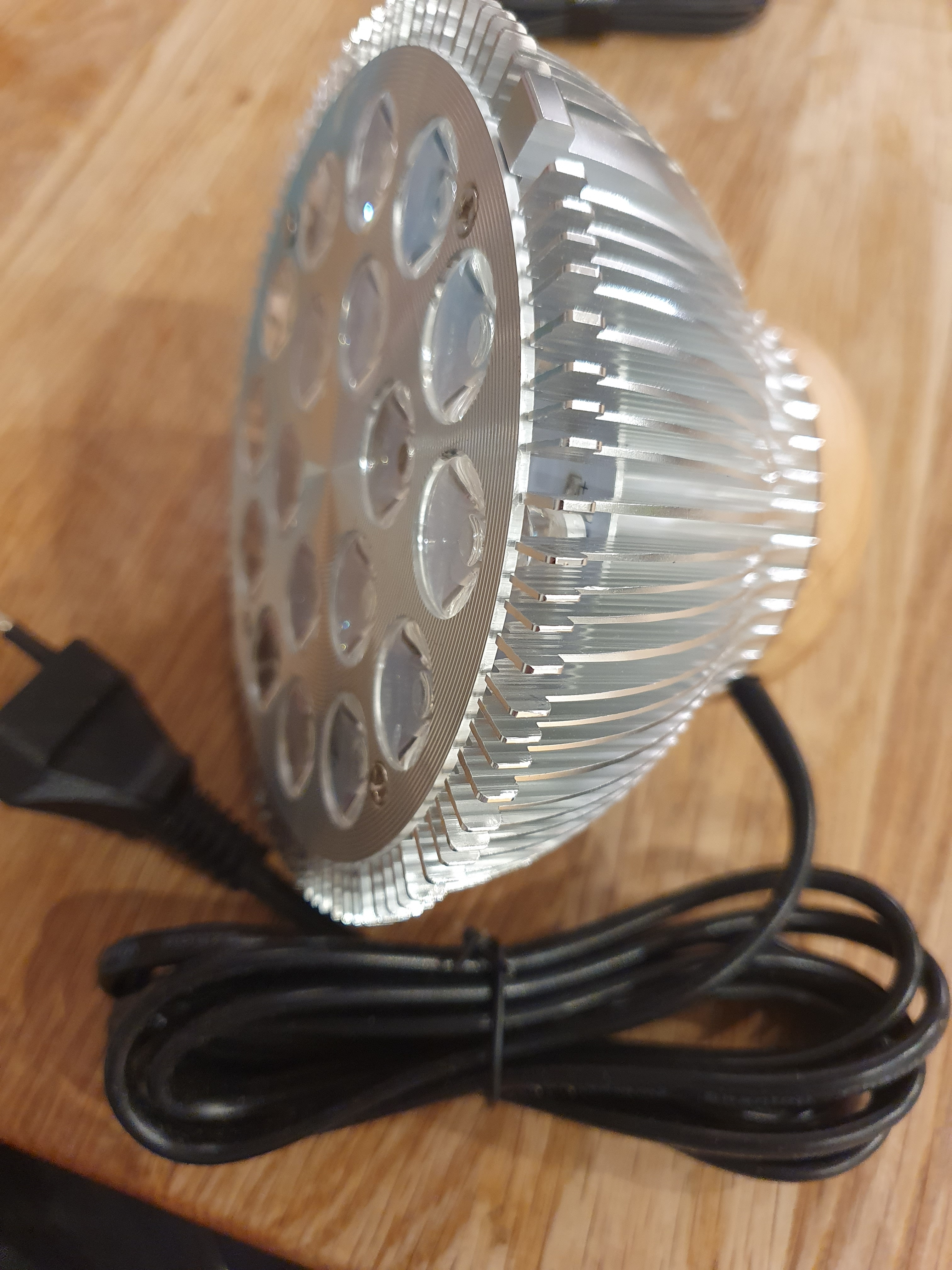 Har tidigare kört både UHOP sticks och UHOP plattor från Dusk men nu valde jag att komplettera med ett antal av deras D'orb LED eftersom de har ett mer koncentrerat ljus dvs. mindre spridningsvinkel som är lite gjort för högre burkar och kan med fördel ställas direkt på terrarietaket. Sedan kommer ju trädets grenar att skugga en del vilket är bra för att ge en känsla av djungel där det på många platser inte kommer ner så mycket ljus. Dessa är ju väldigt starka och detta kommer jag ha på framför allt mitt på dagen för att simulera den mitt på dagen ganska starka sydamerikanska solen.