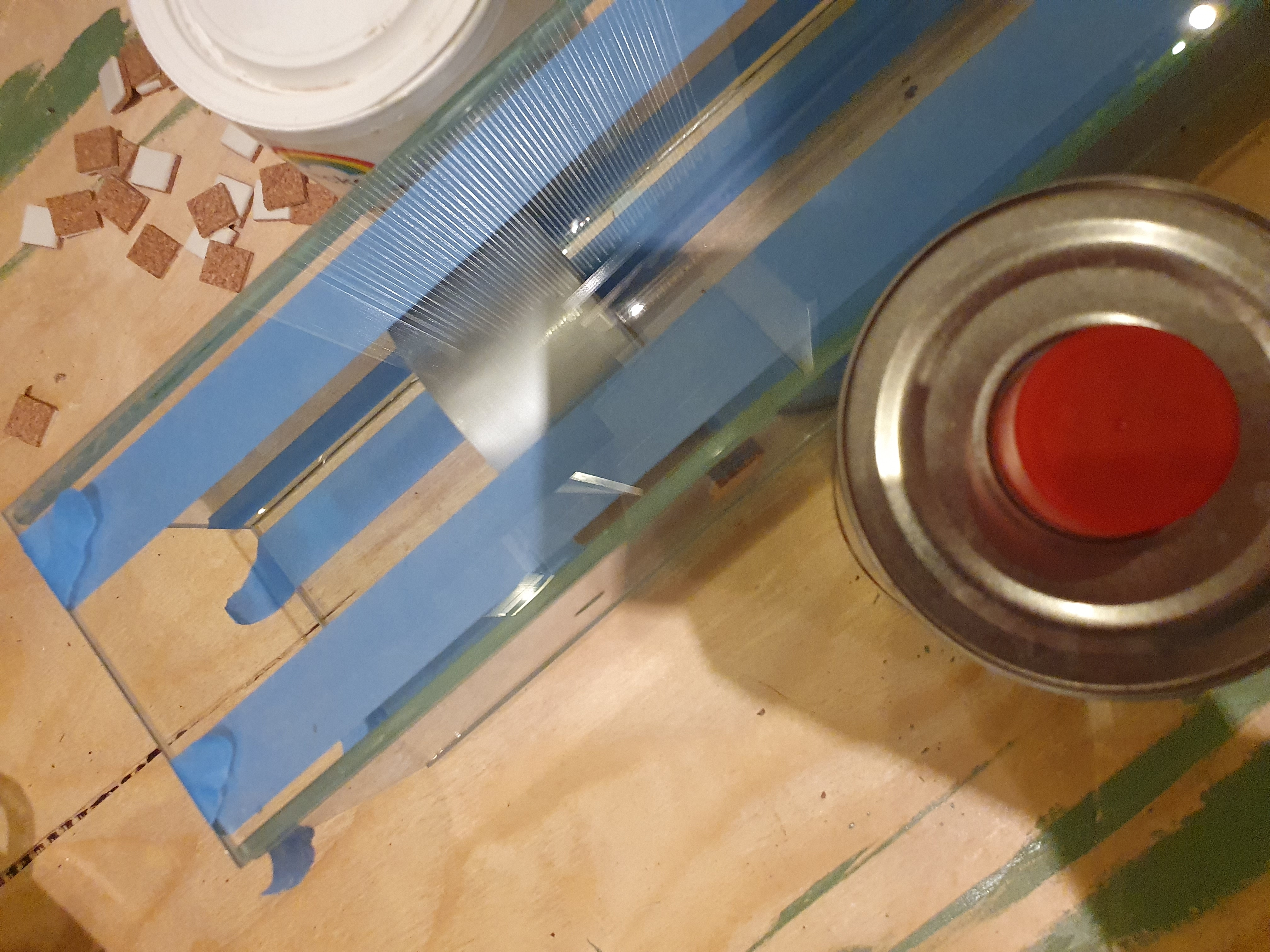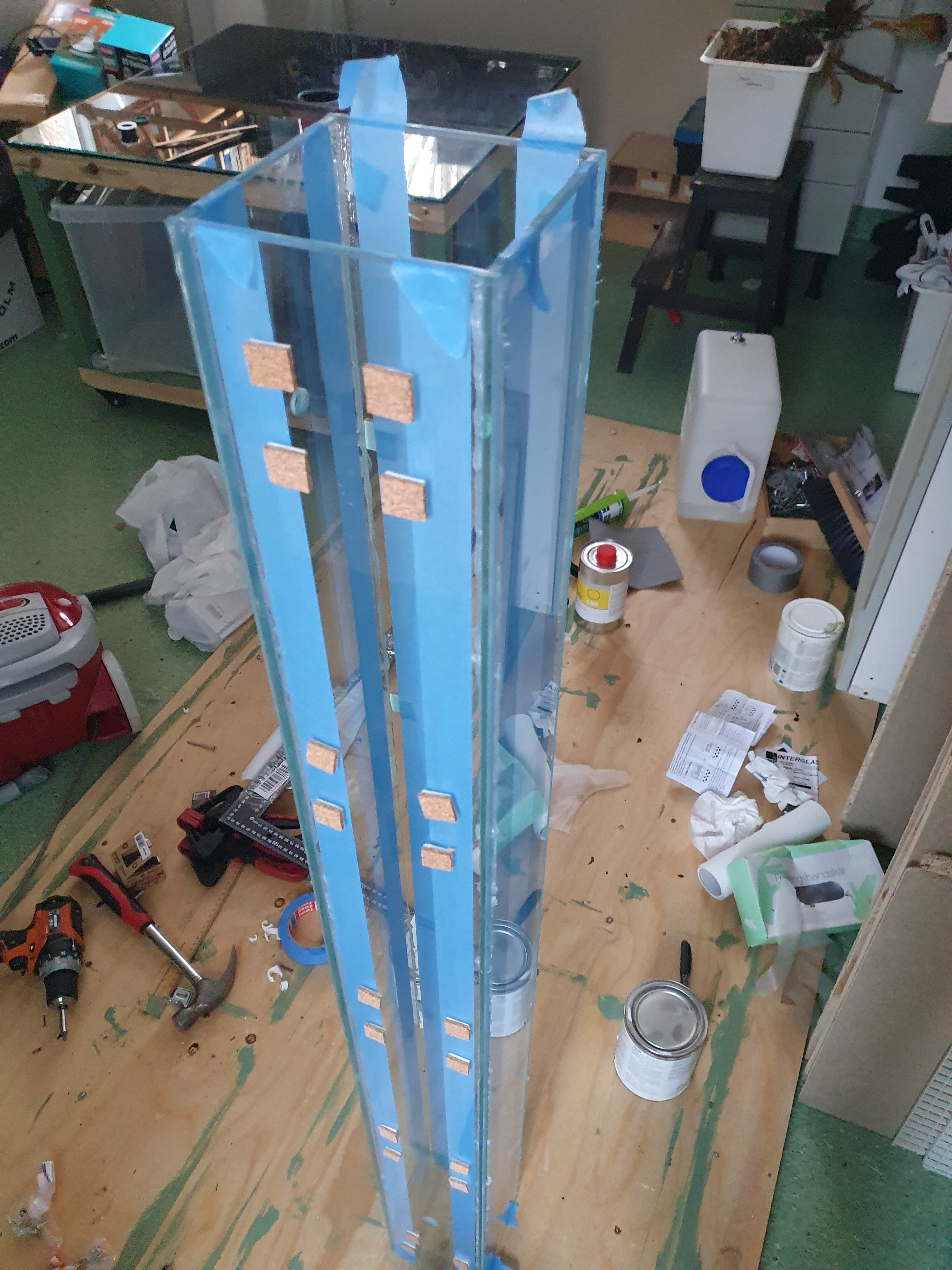Nästa steg är att limma fast "trädstammen" i mitten men jag tänker inte limma sidorna eller toppen förrän jag har gjort färdigt the hardscape. Det är så smidigt att komma åt det från alla sidor. Jag har med flit ännu inte beställt skjutglasen för även om jag har räknat på hur stora de borde bli vill jag inte chansa utan kommer mäta och beställa dem när väl övriga burken är limmad.