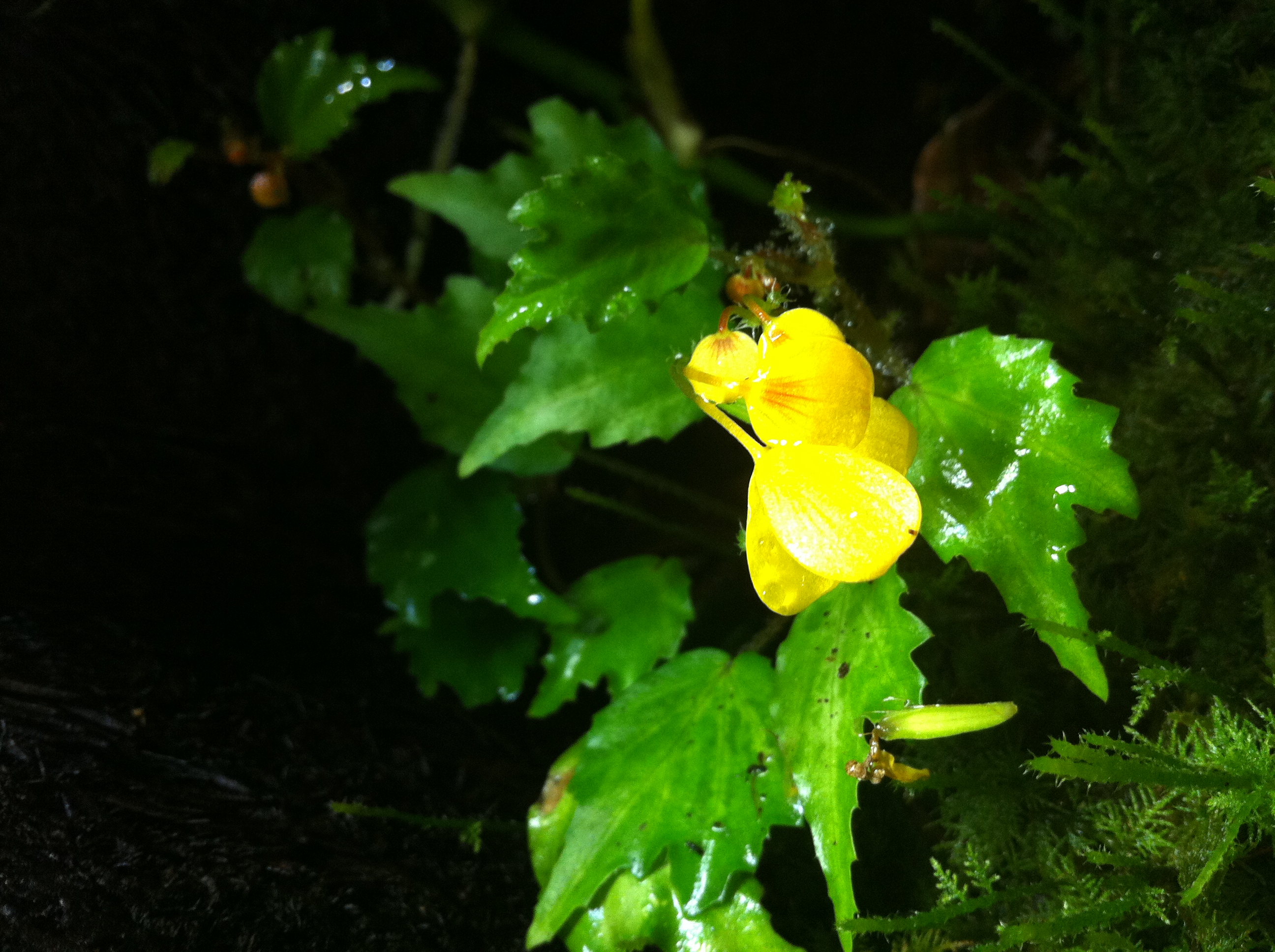Man törs nästan inte visa sina jättevanliga blommor tillsammans med alla de där fina orkidéerna, men den här (Begonia schulzei) är ändå lite speciell. Hos mig i alla fall. Jag hade nämligen massor av den i mitt stora terrarium ett antal år tillbaka, så mycket att jag rätt ordentligt ledsnade på den. Den växer långsamt men när man har en halv kubikmeter av den märks det inte längre.