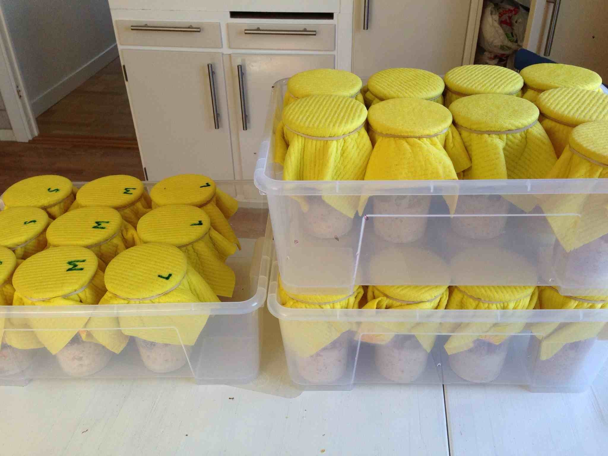... och så här vart det ... De staplade lådorna åker ner i frysboxen.
