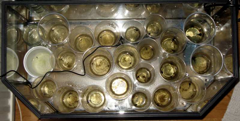 Dock så händer det att jag måste hjälpa vissa, då har jag dem i en stor behållare som jag inte bytar vattnet på ofta.