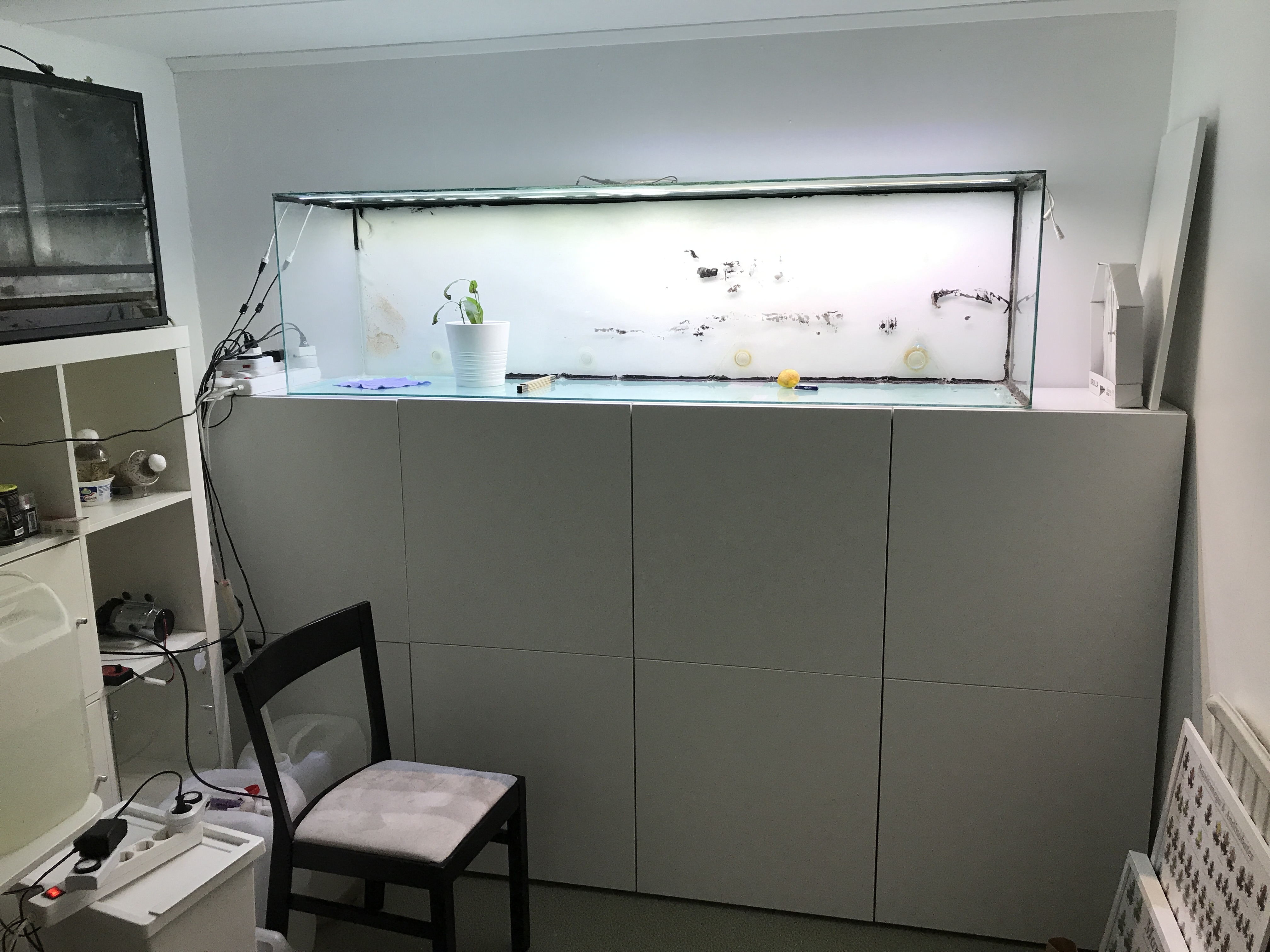 Blir fem dysors, återstår borra för avrinning ner till sumpen. Tänkte borra hål för ventilation, men har nu tänkt om. Blir en smal ventilationsremsa istället.