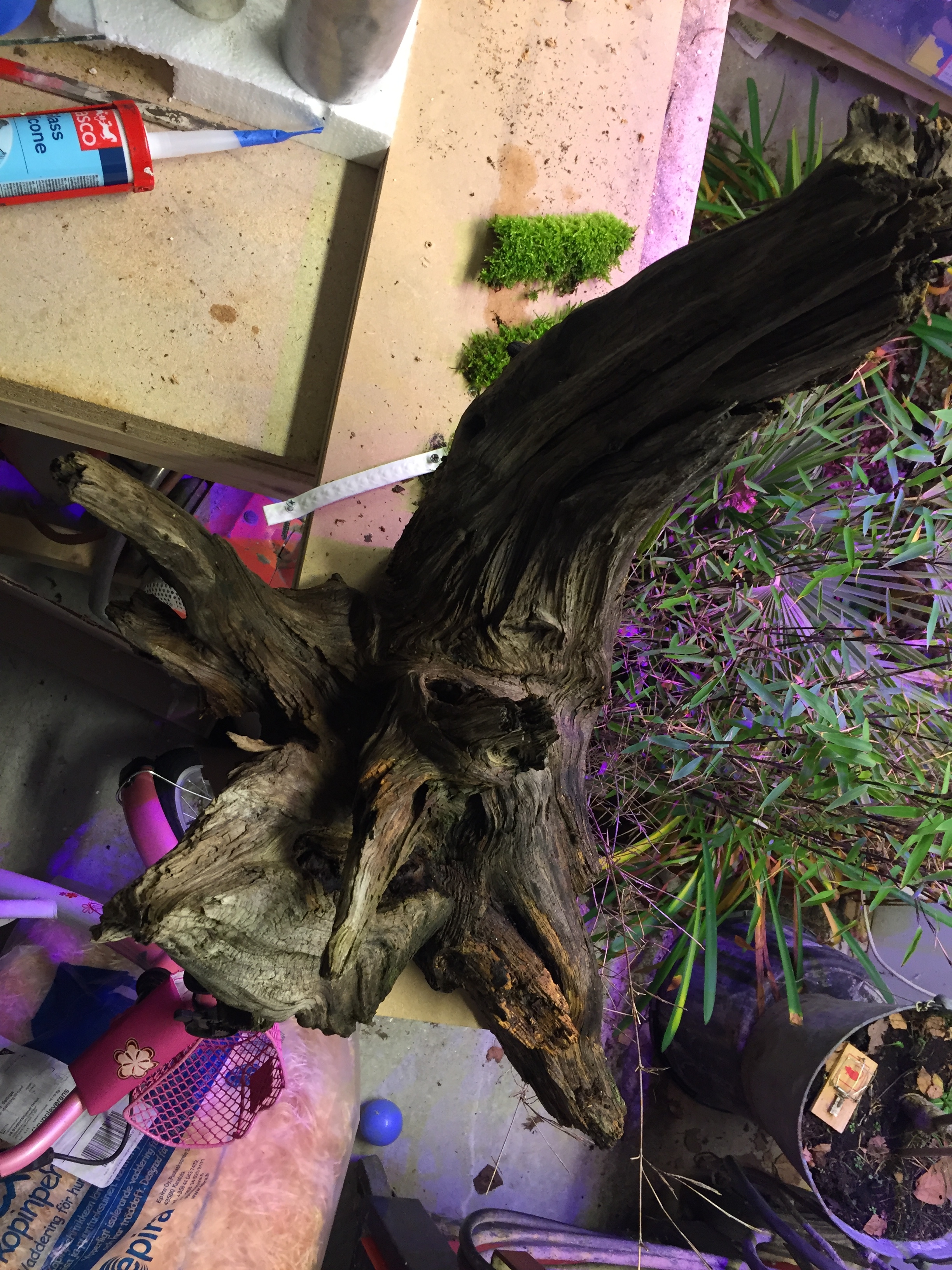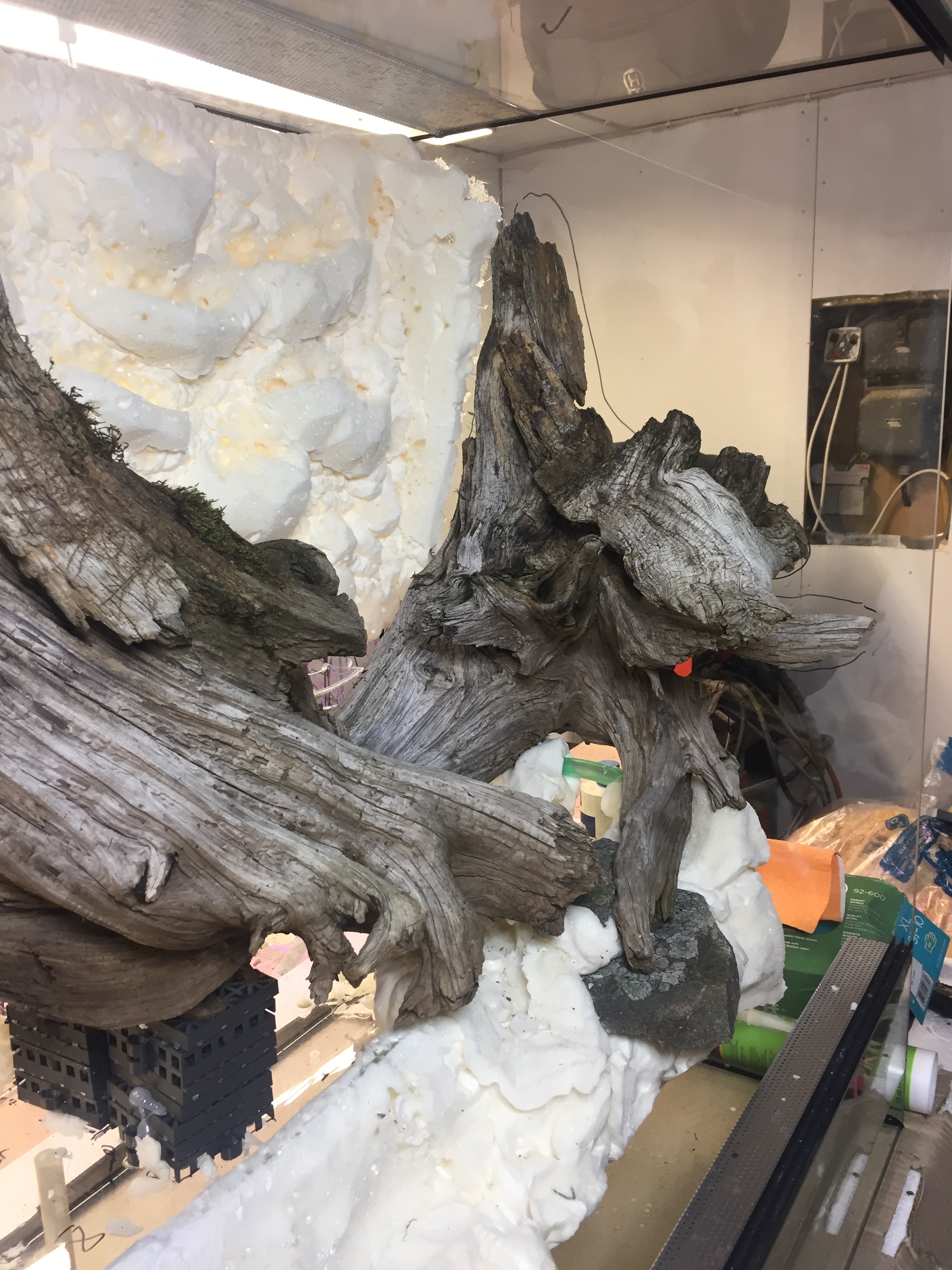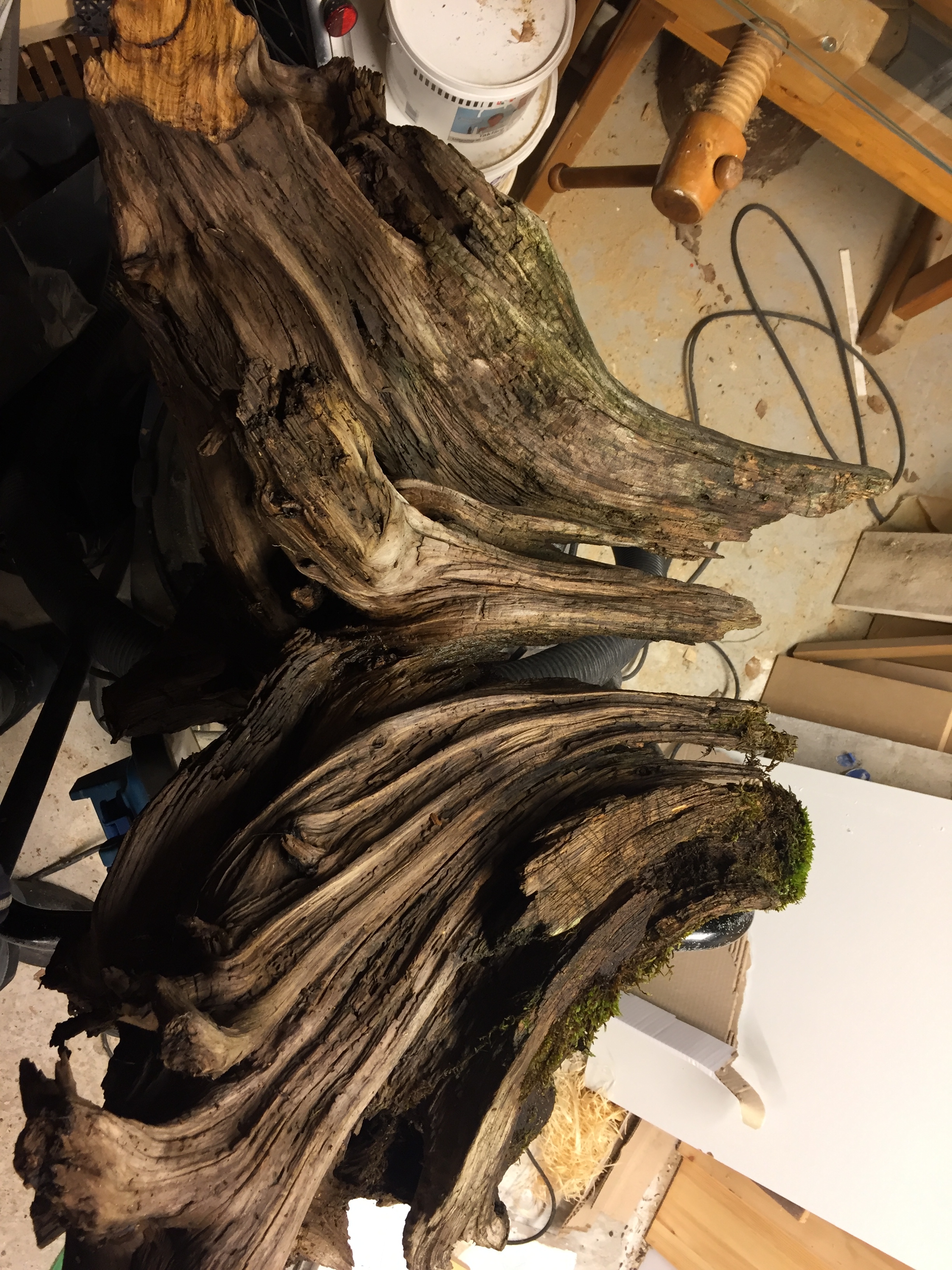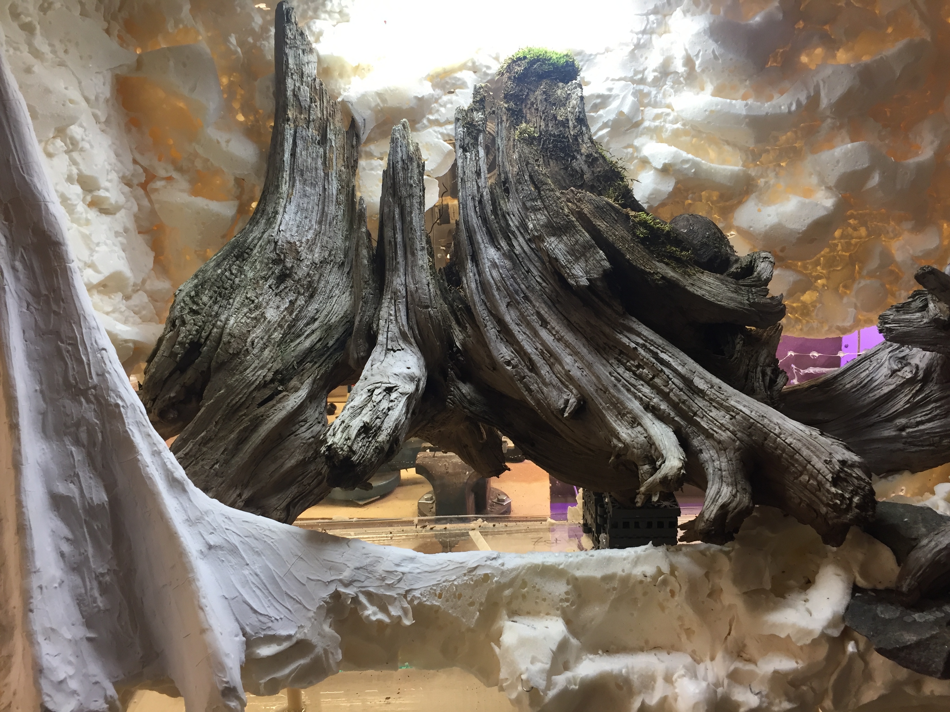 Har experimenterat lite med färgerna, blandat i mer brunt, och gjort den lite ljusare. Idag har jag även monterat några vanliga riktiga rötter för att efterlikna strypfikusen i regnskogen. Det gjorde susen tyckte jag! Det skapade skuggor och struktur och på så sätt ett steg närmare en mer naturtrogen buttress rot.