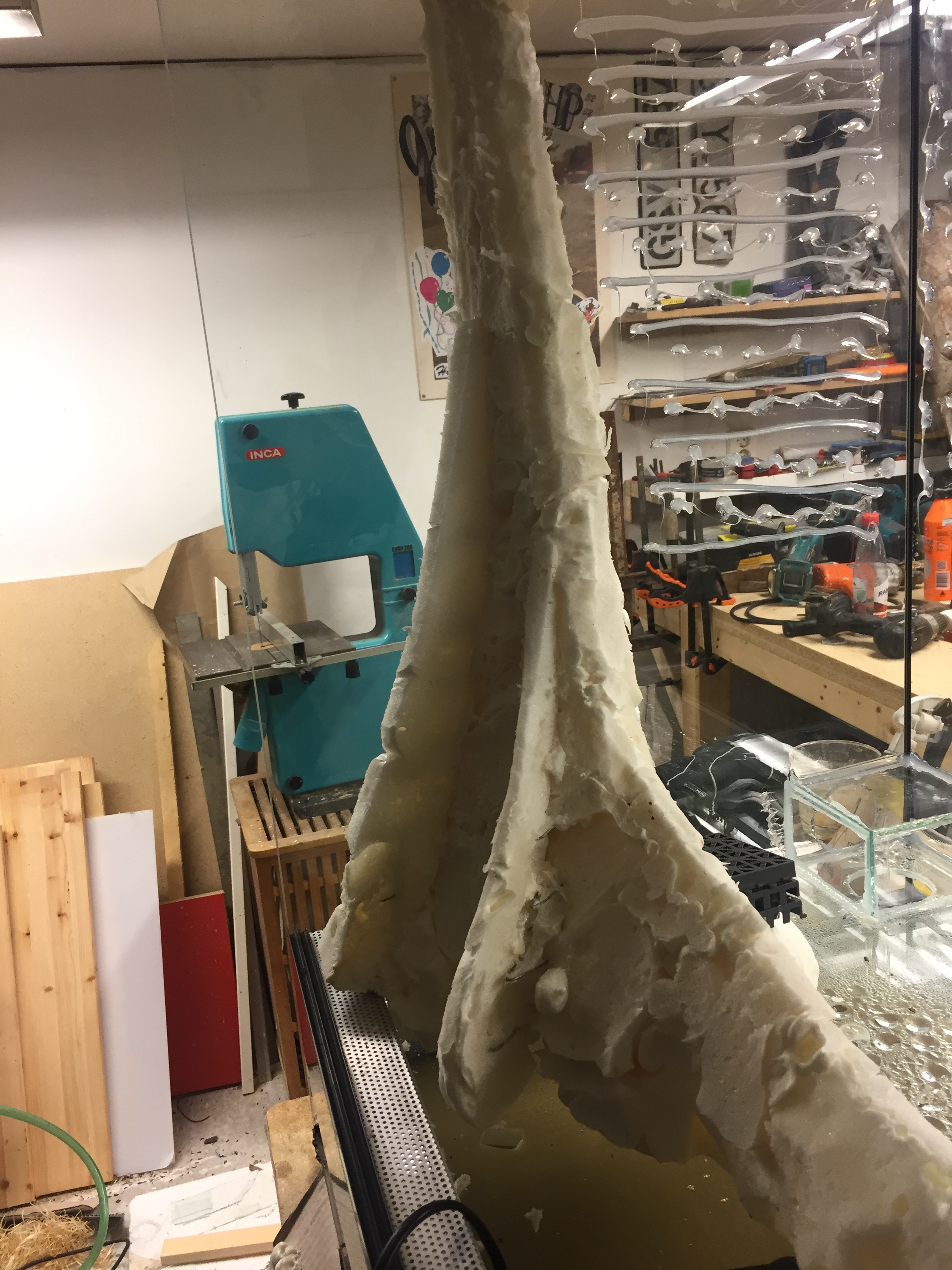 Nu har jag fogskummat baksidan och lite på sidorna samt skurit till fogskummet till en form jag gillar.