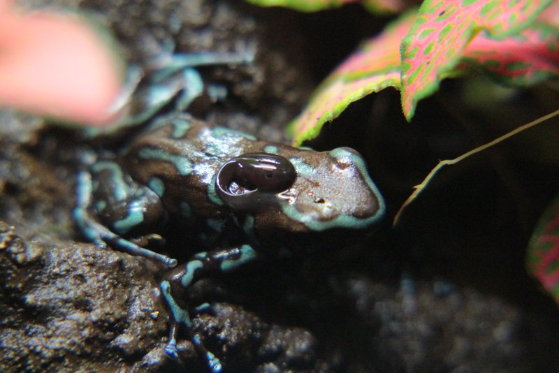 Jag blir alltid lika fascinerad av hur små grodorna är när de kliver upp. En av mina R. amazonica 'Rio tigre'. Ca 10 dagar gammal.