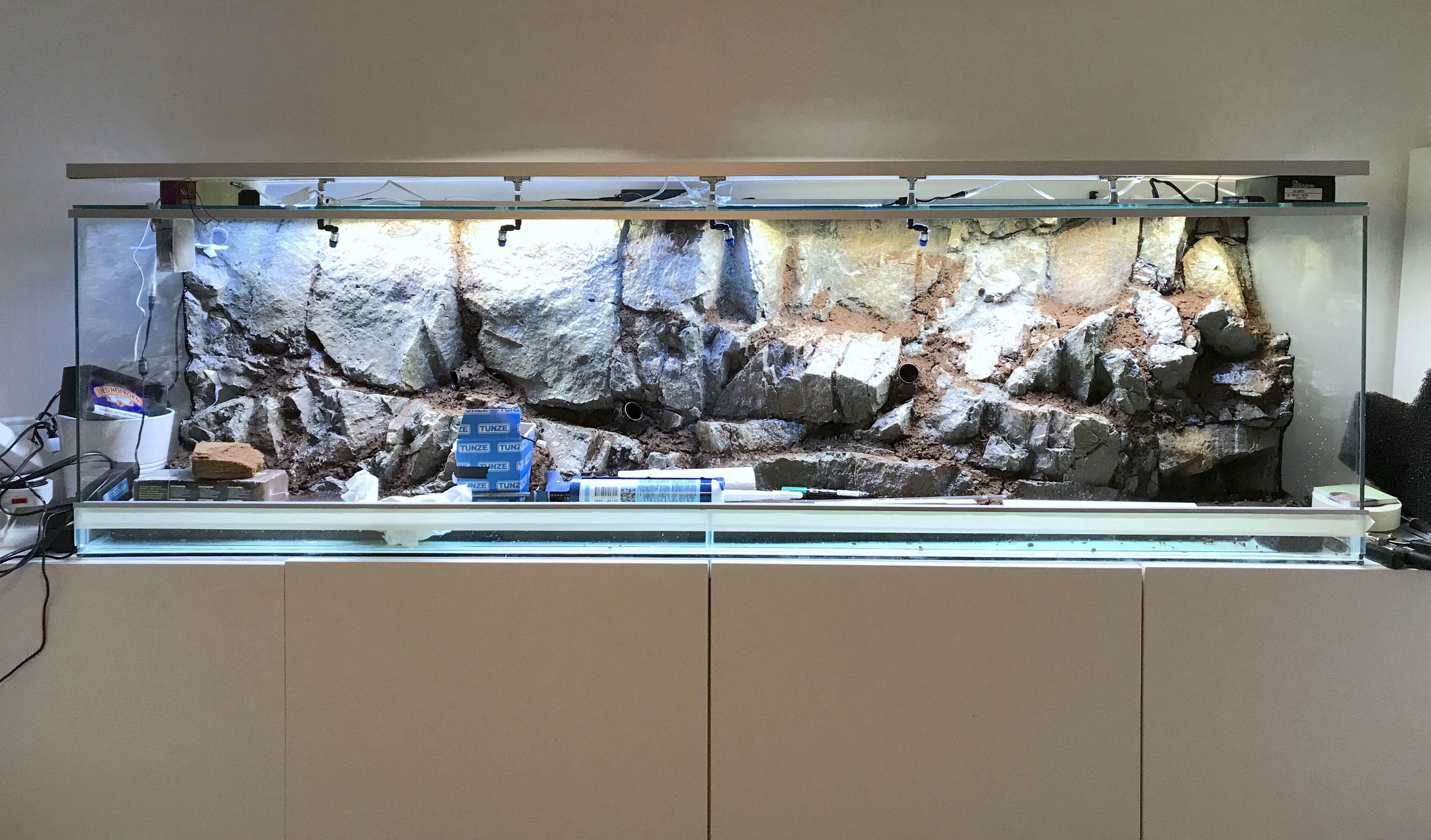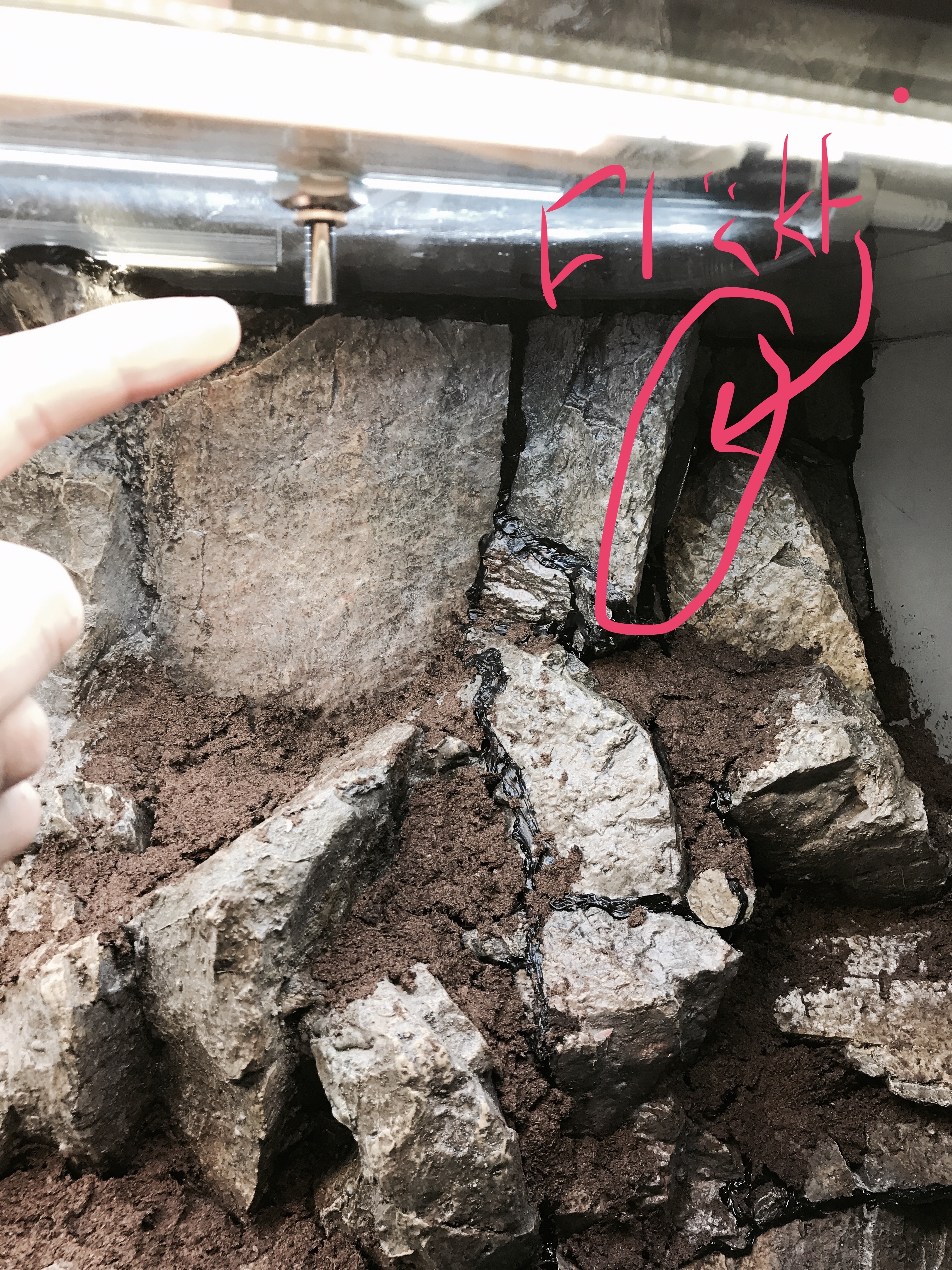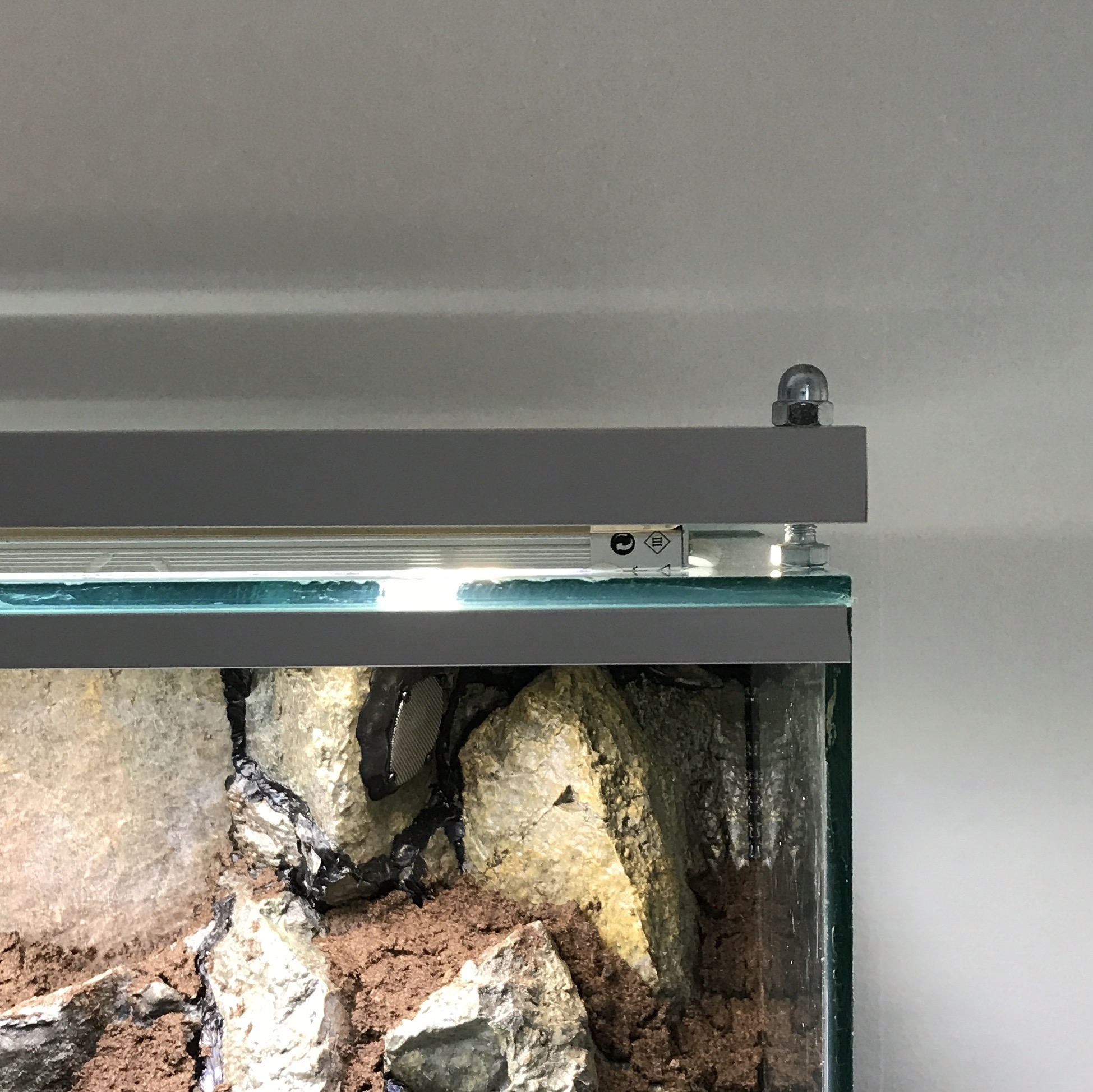 Blir ca 1cm luftspalt (på bilden är det ca 5cm) mellan terrariet och armaturen.