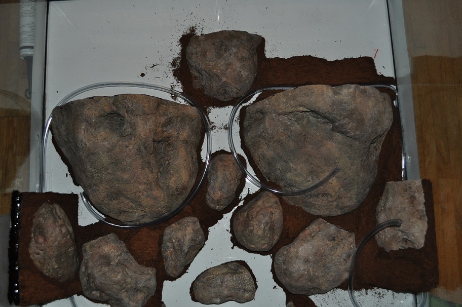 Eftersom terrariet ligger med baksidan neråt,sen är det bara o kapa rötter(mangrove) så man får-