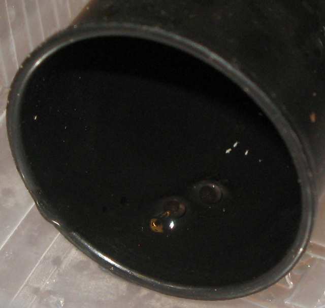 Av någon anledning lade jag en plastburk under bromelian och sedan sprayade jag terrariet och vattnade lite extra i bromelians bladrosett och då hittade jag den här i plastburken efteråt, den måste ha följt med vattnet ut ur bromelian.