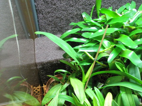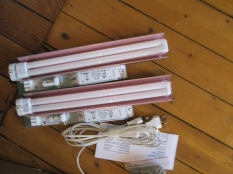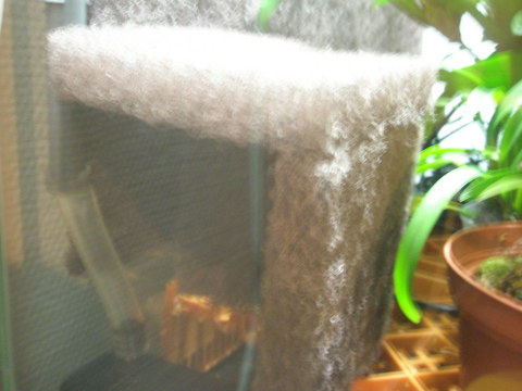 Under tiden hade jag beställt en Epiweb IIS-bakgrund (http://www.dusk.se/Epiwebiis.htm) med samma mått som terrariet (till bakgrunden köpter man också en pump), två st 36W Dulux-L armaturer inklusive reflektorer, och mossa från dusk tropik.