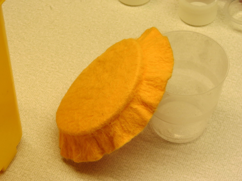 Brukar se exakt sådan gul/orange "duk" i nån av affärerna/byggvaruhusen jag oftast rör mig bland husgeråden... ICA, COOP, K-rauta eller Bauhaus och även köpt den innan man själv blev pilgiftad. Ska försöka minnas att jag ska hålla ögonen öppna. Köpte små vaxmott på groddagen senast av Kristina /småkrypet och det satt nästan identisk duk på de burkarna fast wettex-gul men liknar inte wettex.