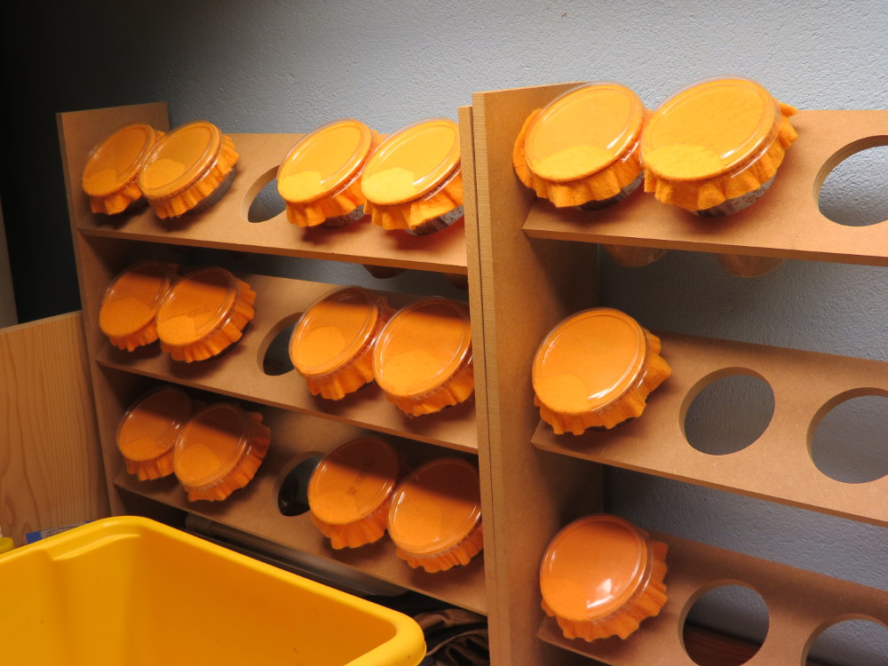 Däremot har det varit kvalster bland hoppisarna lite då och då, men de har bara vanliga perforerade plastlock. /Thomas/