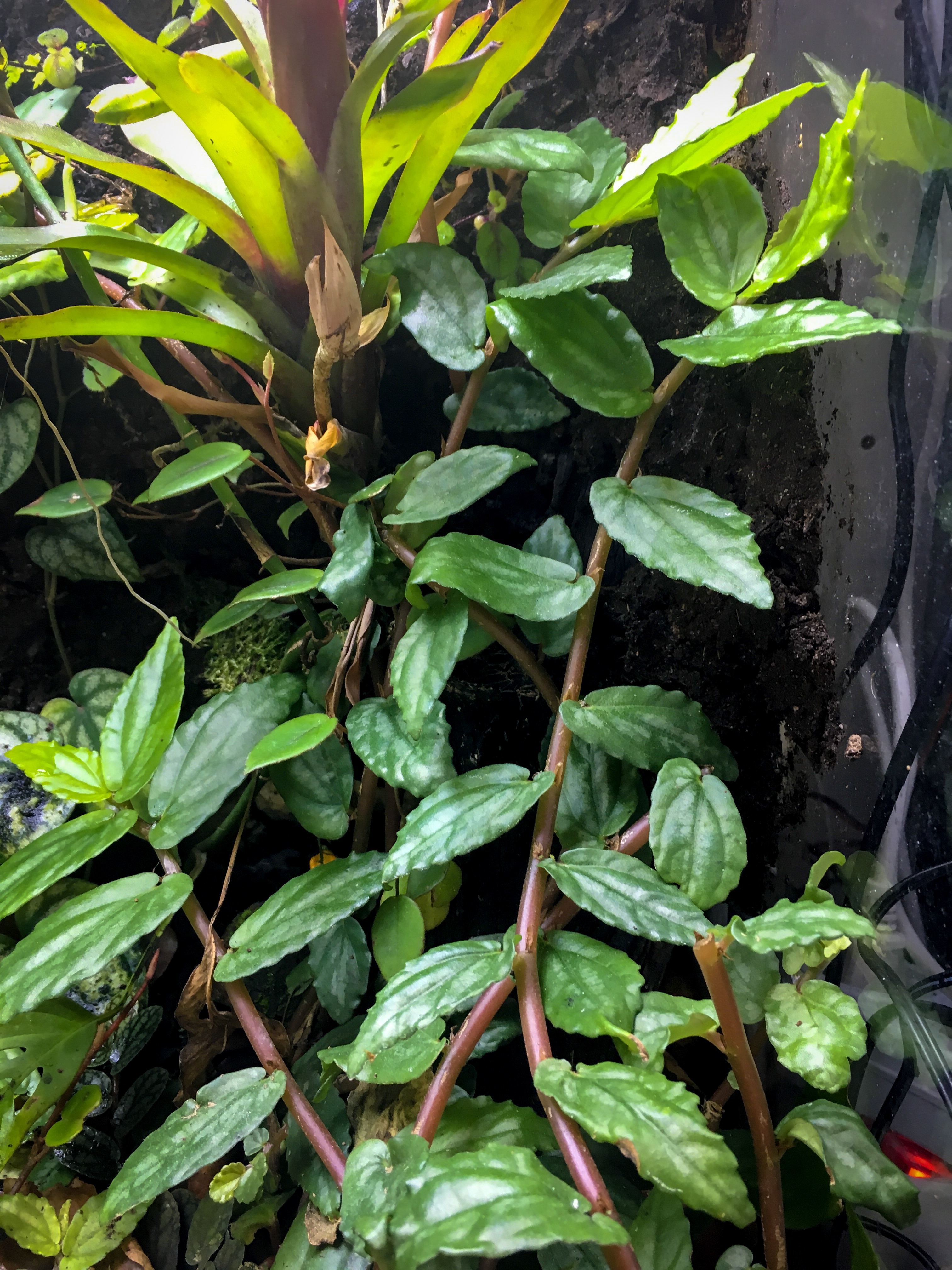 Släktet Pellionia härstammar från tropiska Asien. Arten trivs i medium till hög luftfuktighet och klarar både ljusa och mer dunkla förhållanden. Växten klättrar och förgrenar sig. Bladen är svagt marmorerade och vid tillräckliga ljusförhållanden blommar den med små vippor av vita blommor.