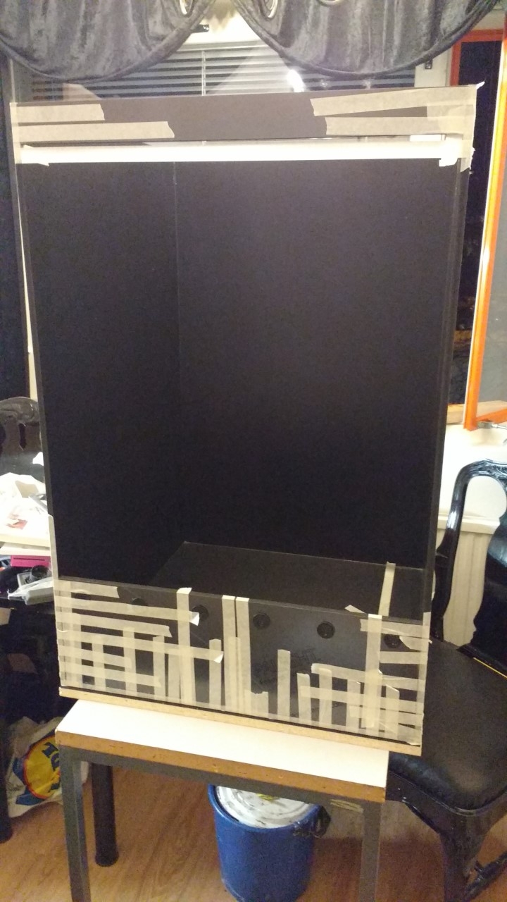 Det är limmat med Tangit...ett pvc lim som man använt tidigare till dessa typer av terrarier. Dessutom har jag lagt en sträng silicon längs fogarna inne i terrariet då jag alltid har vatten i botten men jag tror nog att det inte skall behövas egentligen.