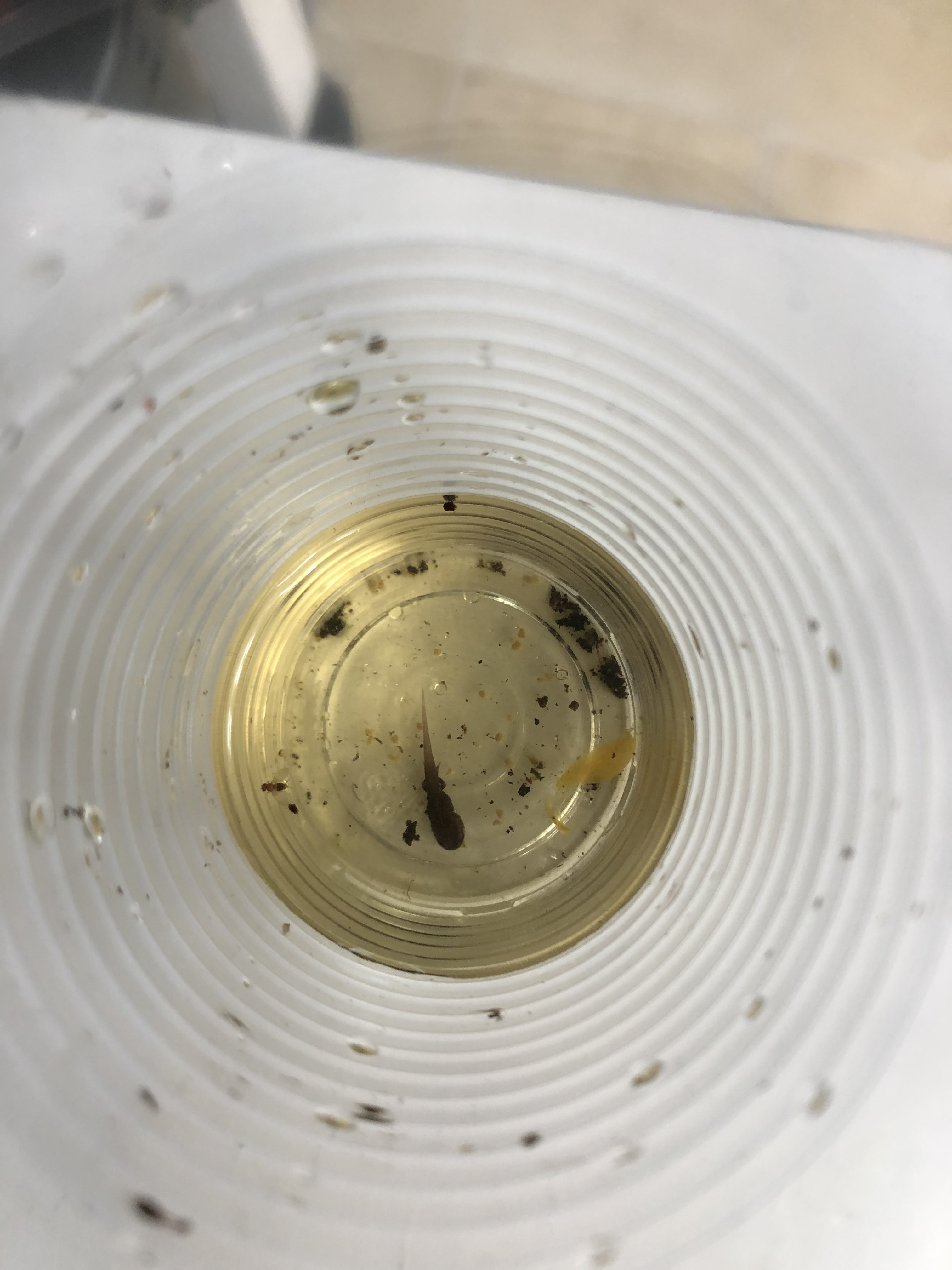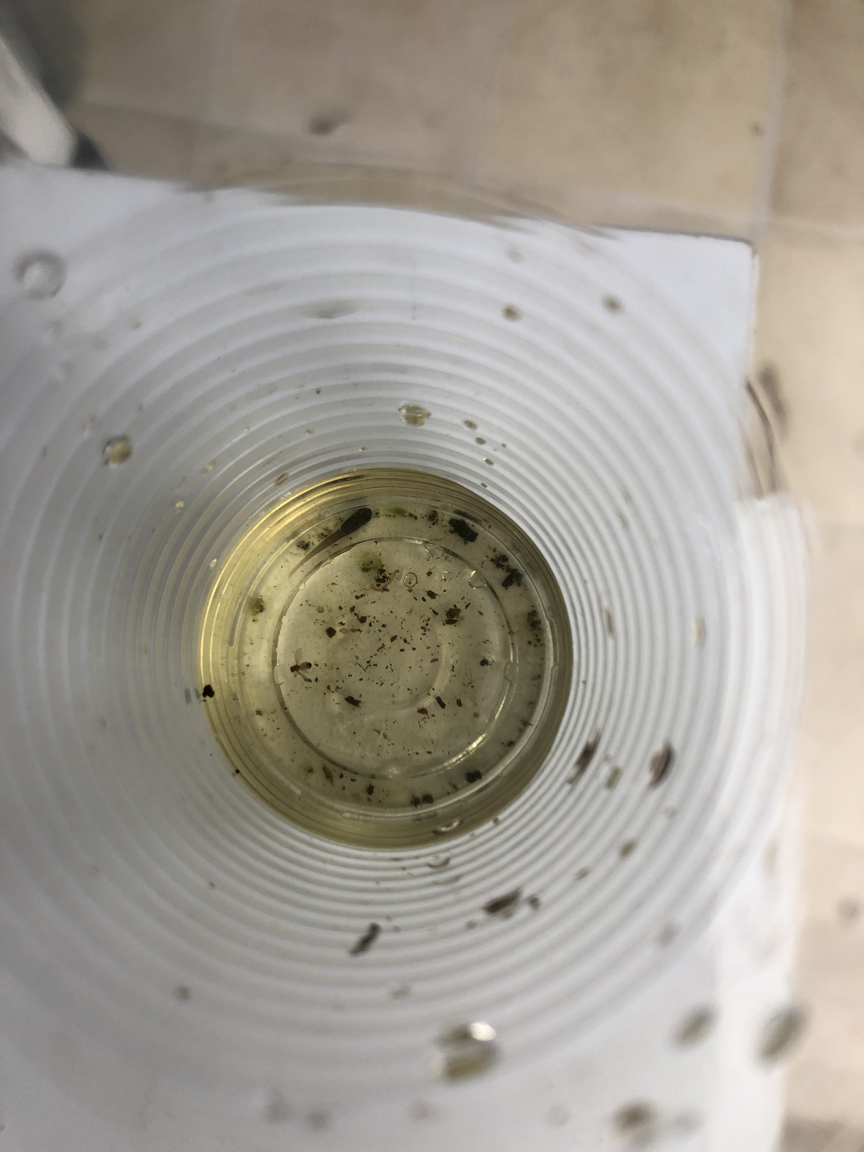 Har Oophaga pumilio salt creek där hona dog i veckan. Har sett dem tidigare bära yngel på ryggen men aldrig sett mer. Har även plattmask i det terrariumet och tänkte att nu skall jag ordna det. Flyttade hanen och började tömma. Men tänkte att det kan finnas yngel så kollade alla bromelioer och tömde dem i en spann och ja där var 2 yngel. Som ni ser så har jag dem nu i 2 glas det övre ynglet har börjat få bakben.