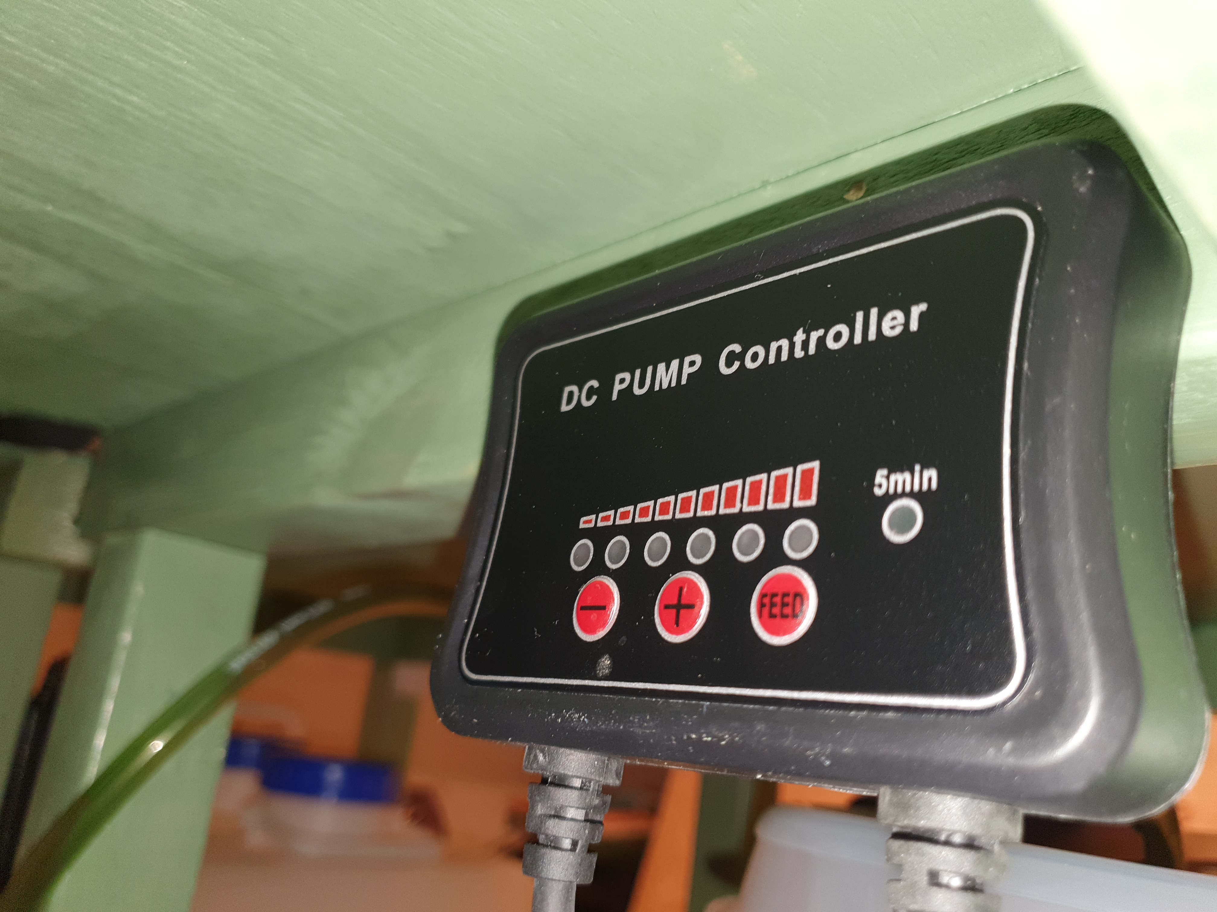 Pumpen har en ganska smidig styrning för att digitalt kunna styra flödet så att det inte strilar för mycket och inte heller droppar för lite när den väl går på. Eftersom dessa delar kommer sättas in när jag limmar burken och fixar mitten/bakgrunden får det bli en djupdykning i en senare story.