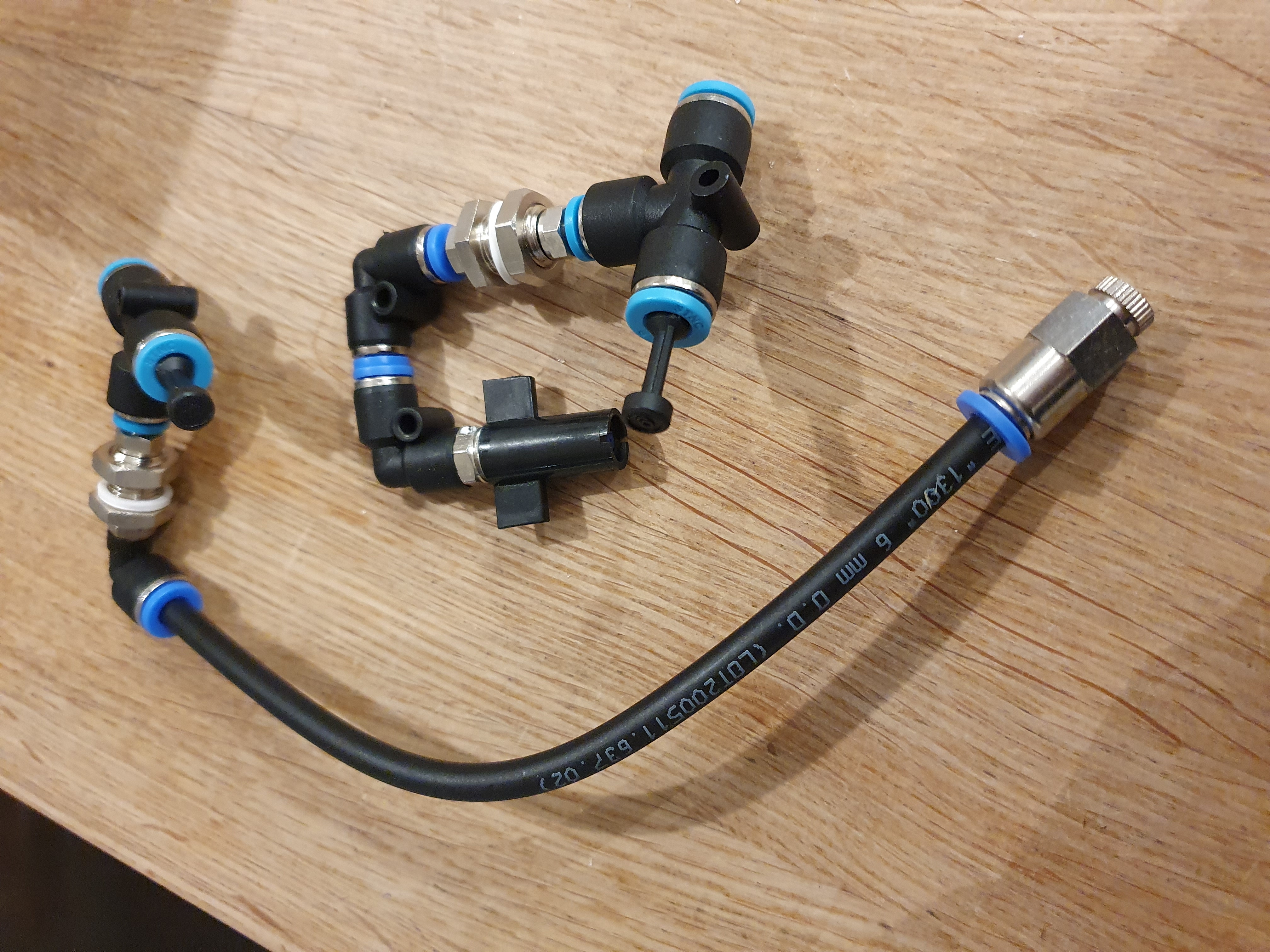 Kommer ha 4 st singeldysor för regn och 4 stycken för dimma/mist (dv. regn i varje hörn och dimma/mist mitt på varje sida). De senare har en mindre spridningsvinkel och därmed köpte jag med lite längre arm så att jag verkligen kan rikta dem där jag behöver ha det fuktigare (mossa etc.). Det blir klassisk 6mm svart slang. Jag vet inte om jag haft otur men jag har tidigare kört blå slang som efter ett par år har sprungit läck och det blir så rackars tråkigt att torka upp.