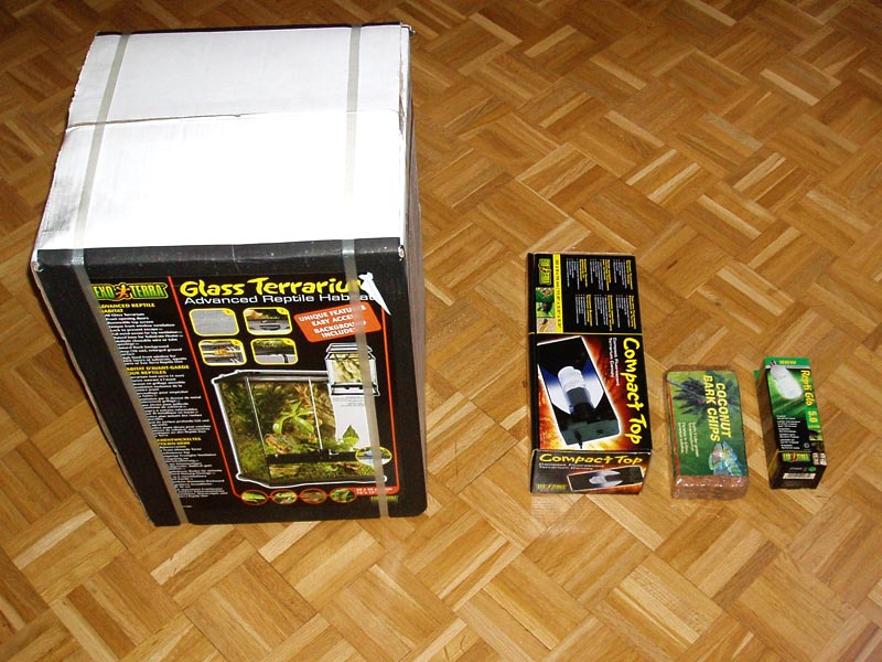 Blev förvånad vad man kan få för 750:-, terrarium, armatur, lampa och lite bottenmaterial.
