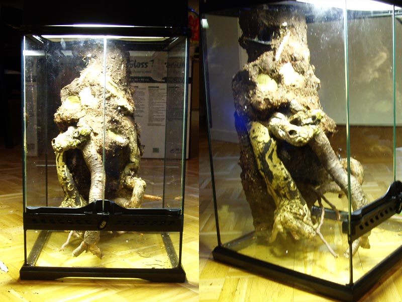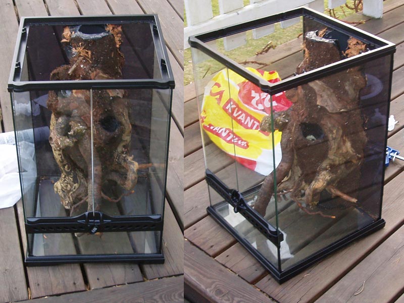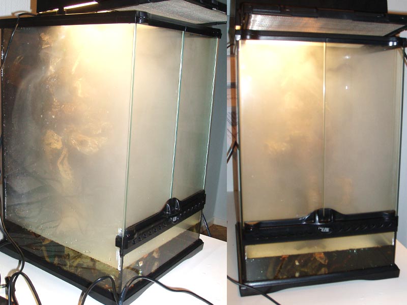 Eftersom ingen kunde svara på foggerfrågan så blir det till att testa. Ser ut som om foggern behöver flyttas upp en bit i terrariet för att göra riktigt bra ifrån sig. Men det kan nog räcka med en fogger om jag byter ut 2/3 av toppen där det varit nät mot glas.