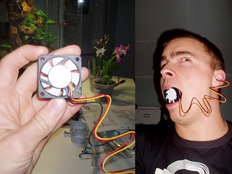 1. Jag har köpt en fläkt till terrariet. Det är en 40x40x10mm (12v) datorfläkt.