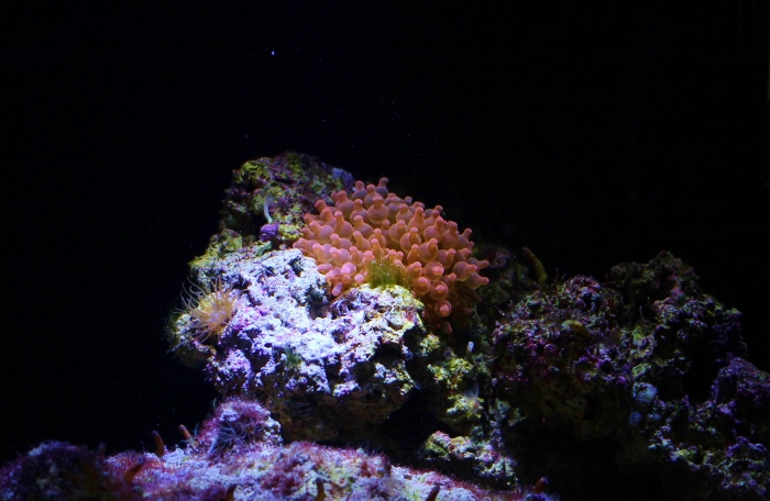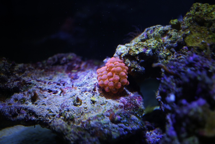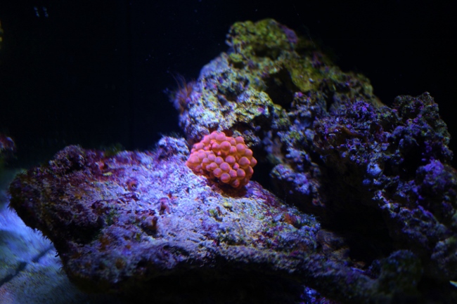 Startar en tråd om saltvattensakvarier. Jag har precis börjat med denna hobby och har ett Blennyakvarium på 80 l (hade gärna haft ett större men priset hindrade mig). Det har varit igång i ca 2,5 vecka nu och idag köpte jag min första korall! :) Det är ca 7 kg levande sten i och ca 1 kg levande sand. Tänkte att ni som håller på med saltvatten, utöver grodorna, kunde lägga upp lite bilder och visa upp vad ni har.