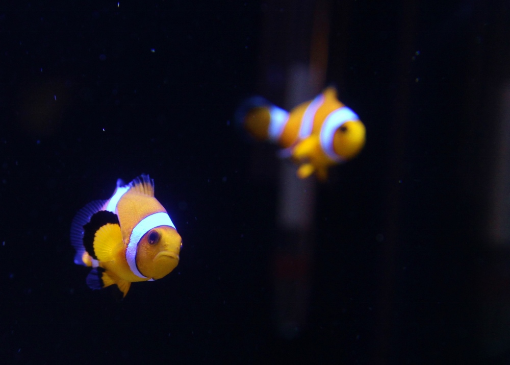 Akvariet har fått stå till i ett tag nu och anemonen har bokstavligen vandrat runt i akvariet och har nu slutligen hittat sin rätta plats i en liten skreva. Efter att vattenvärdena var stabila var det äntligen dags skaffa de första fiskarna! :D För mig var det självklart att skaffa ett par clowner eftersom att jag tycker att de är fantastiskt fina fiskar!