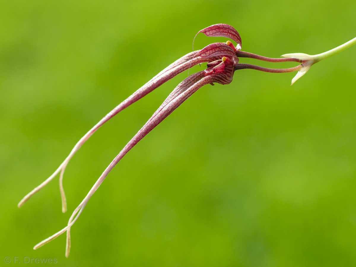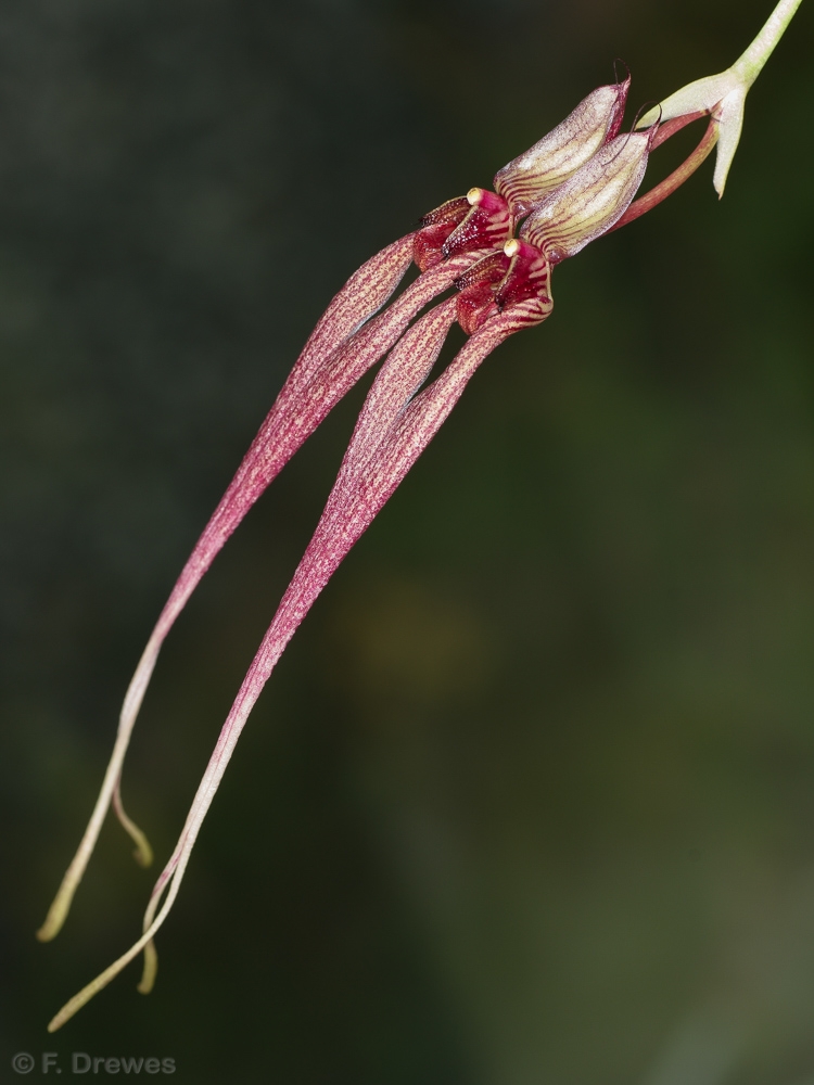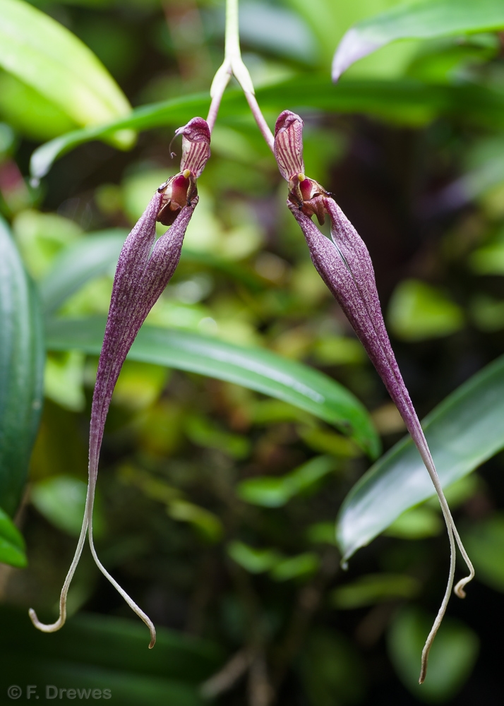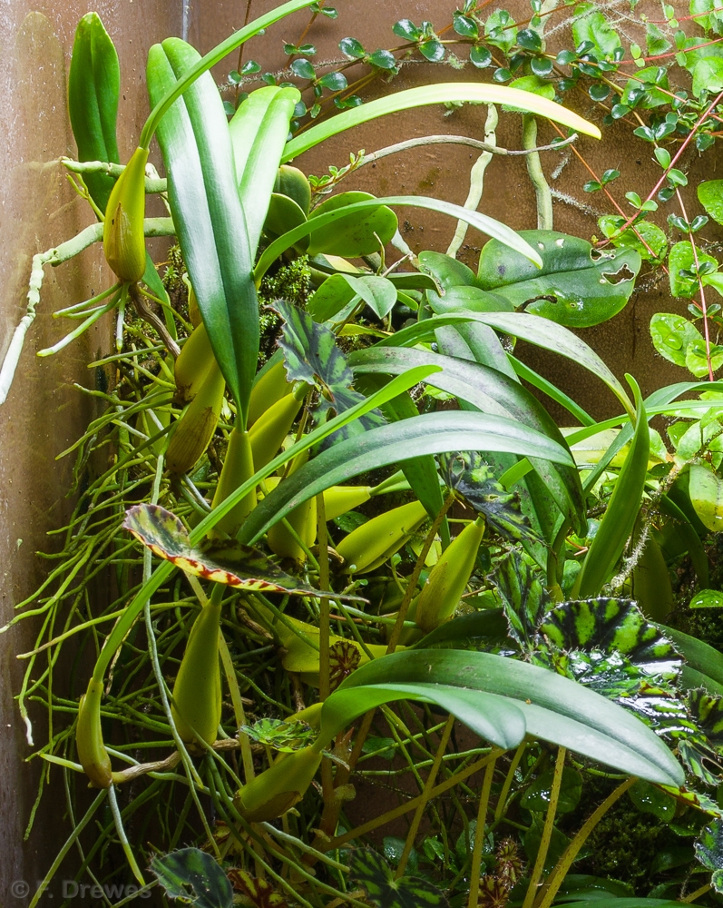 Epifytisk orkidé som förutom blomman är rätt lik B. lepidum i både utseende och skötsel. Funkar mycket bra i regnskogsterrariet utan att ställa särskilda krav. Växten (bulb plus blad) blir gissningsvis 12 cm lång. Behöver inte planteras utan kan t.ex. bindas fast på en gren eller klämmas fast på ett lämpligt ställe. Det räcker om rötterna får lite fuktighet på sig när det regnar. Förökar sig sakta men säkert och blommar lite då och då.Externa länkar
