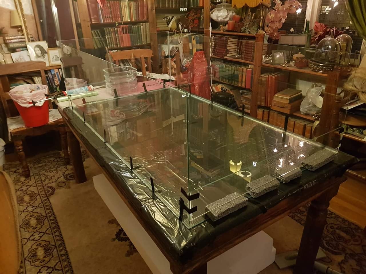 Bilden är på den gammal instrument som min son lekte med när han var liten. Skulle på tippen med den och orkade inte bära ut den till bilen. ☺Så jag började plocka isär den. Då kom en idé om akvarium som snabbt ändrades till växtterrarium, som i sin tur blev hem åt två D.tinctorius.