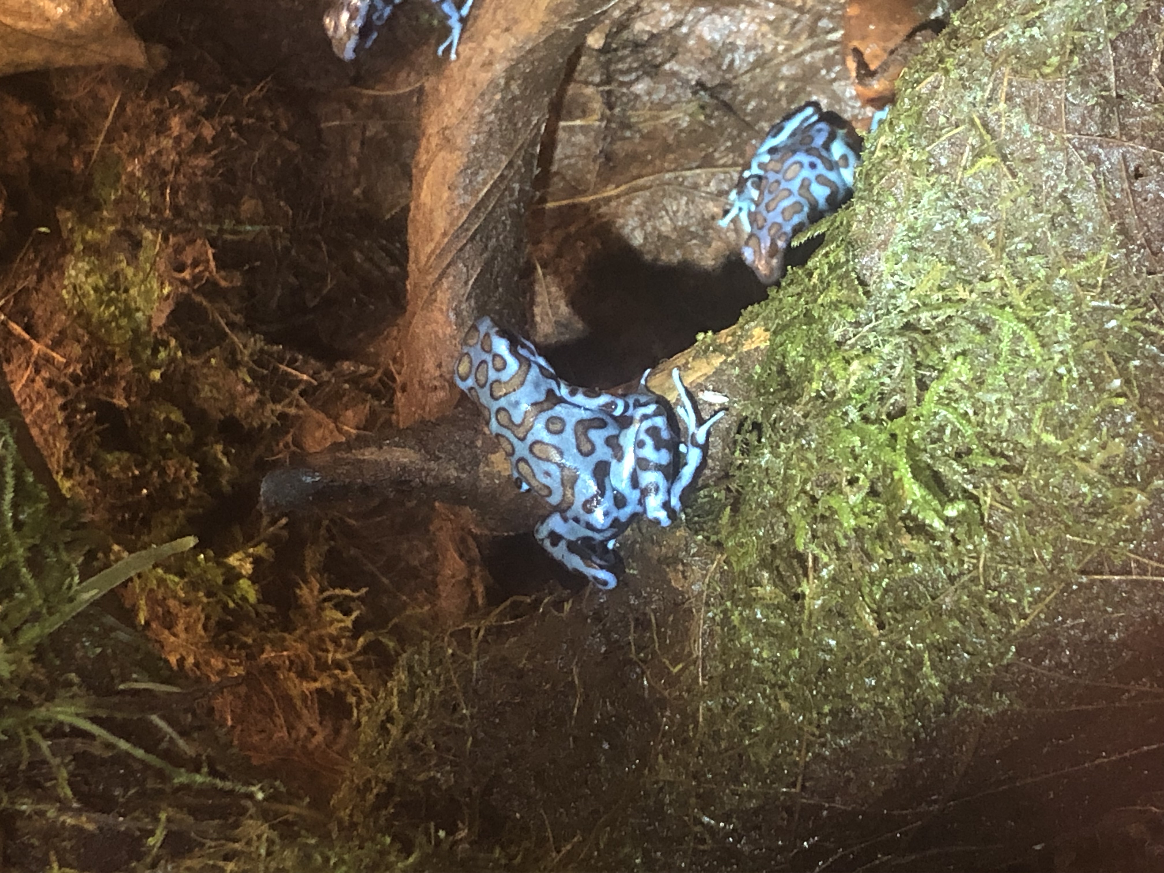 Jag håller D. tinctorius Azureus, D. leucomelas Guyana Banded, P. vittatus, E. anthonyi Rio Daule/Göteborg, O. pumilio Punta Laurel, R. variabilis Franska Guyana, R. reticulata och R. sirensis Contamana. Utöver grodorna har jag även en ögonfransgecko, jungfrugeckor och några fågelspindlar.