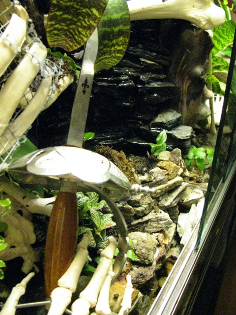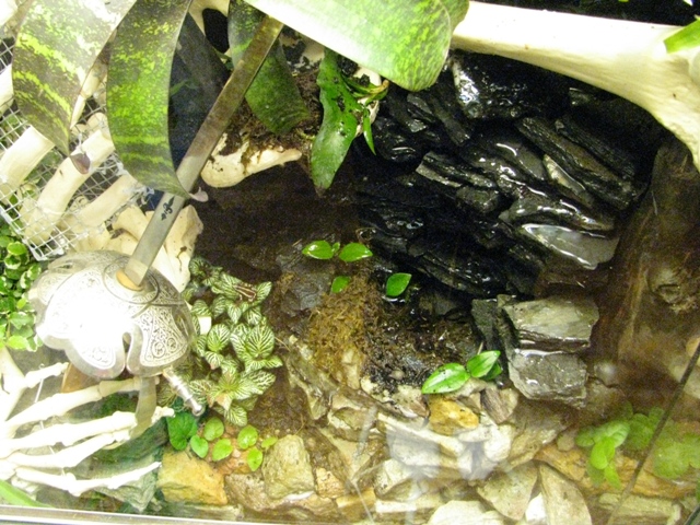 Vattenfallet är byggt så att det är fastkilat mellan två skiljda bakgrundsdelar och bottendelen, man kan följa konstruktionsskedet i tråden vivarium mk 3 forum/viewtopic.php?f=16&t=637 men det skedde ju smärre förändringar när slutet närmade sig.