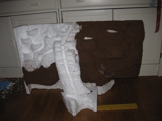 Dessa placerade jag tripp-trapp-trull i en krokig nerförsbacke i frigolit. Det blev på så sätt