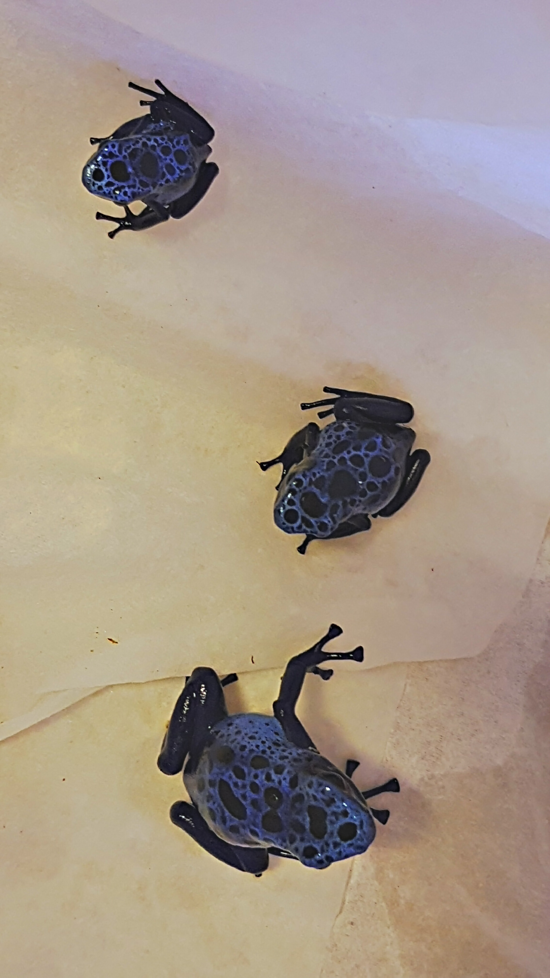 Grodregel: fuktig rygg och torra fötter. Alltså, där du skall ha grodor, behöver du skapa platser där det är mer eller mindre torrt för dem. Om man exv. har en sten i sitt terrarium, avdunstar vattnet från den. Inte sällan blir dessa platser grodornas favoritplats. Så, mossor och sådant är fint för ögat, men ingen höjdare för grodfot. Lägger ett belysande exempel här: