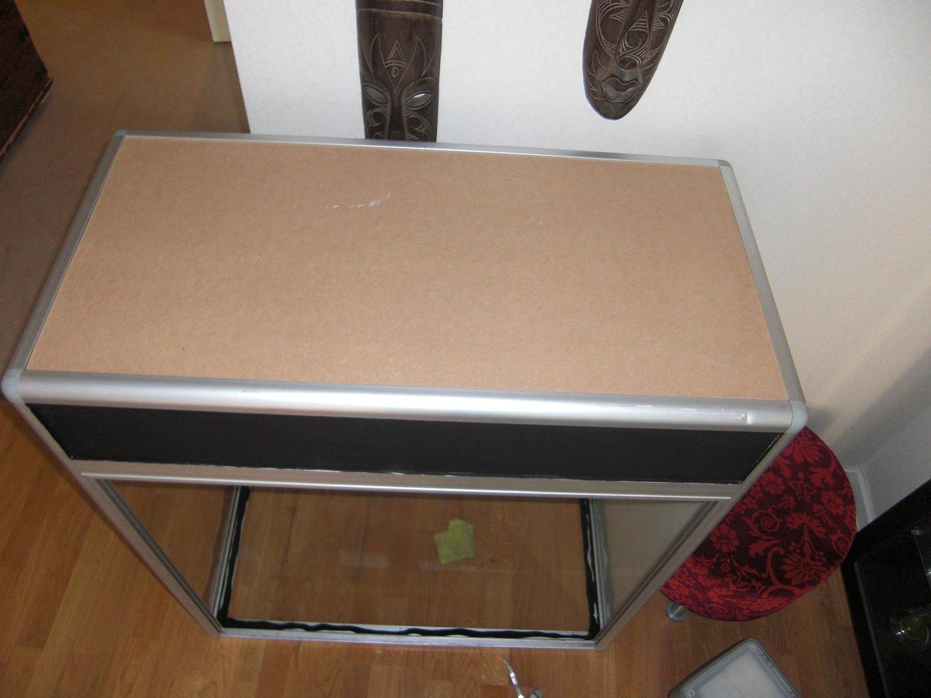 jag har nu limmat dit botten glaset och jag har bytt ut "taket" på burken till en tjockare mdf skiva.