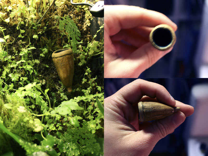 Lekte lite mer och gjorde klart en imitation av en Couratari guianensis nöt, storleken miniatyr. Tror på någonting i denna stil att gömma filmburkar eller behållare i för att skapa phytothelmata eller bara eggläggningsplatser åt grodorna.