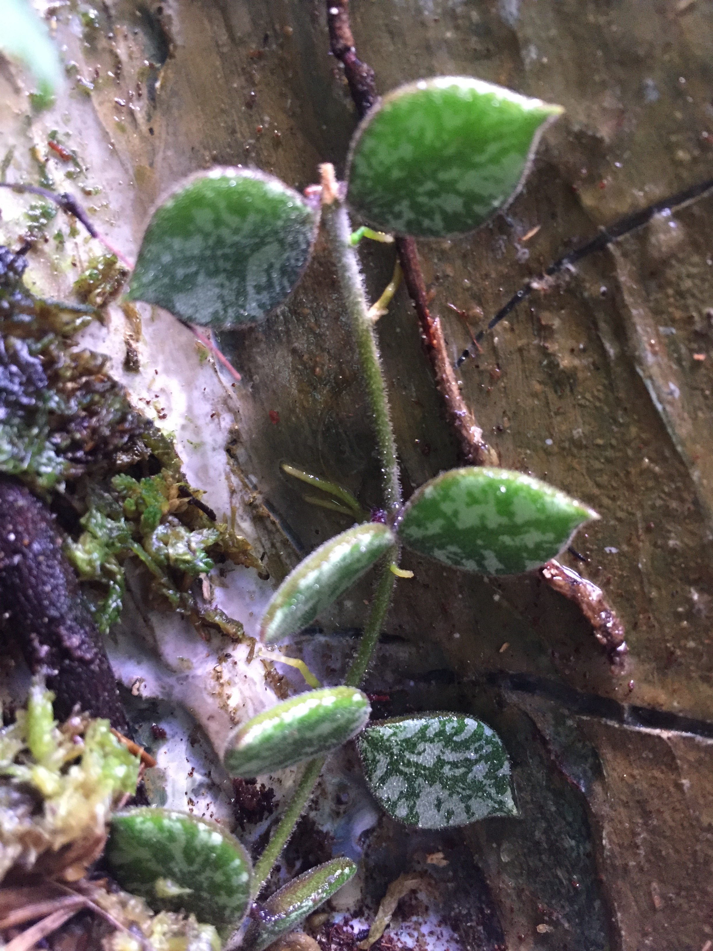 Porslinsblomman som jag fick av tummen verkar trivas och har skickat ut ”rötter” som jag antar att den använder för att hålla sig kvar mot underlaget