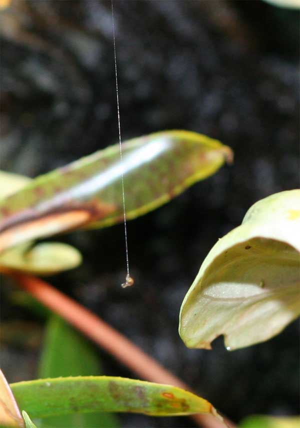 För de som inte ser vad det är så är det en liten snigel på en spindeltråd.