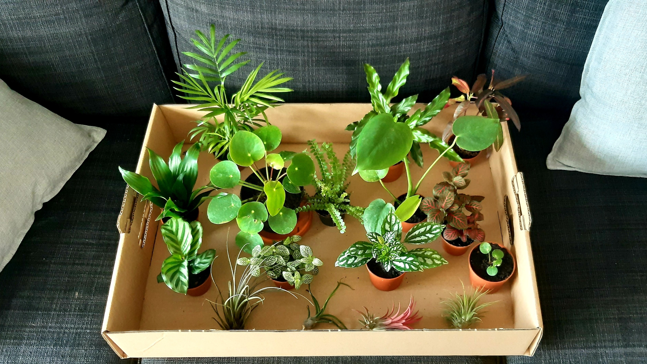 Första omgången växter är redo. Lär bli fler och kanske byta ut någon. En eller ett par bromelior ska också in i lite längre fram.