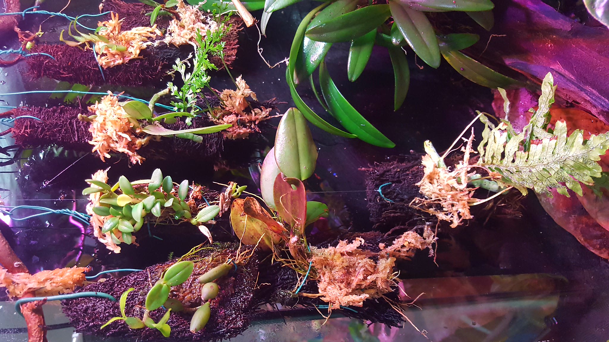 Har tagit hand om växterna jag fick hem efter helgens bravader. Blivit så inspirerad av Tobbes burkar att jag fått tillbaka suget efter orkidéer och gjorde även ett byte med Tobbe via Hulteke i helgen. Har monterat och hängt in. Det blir inte snyggt men det får duga :) Fick med mig 1.1 A. pepperi Orange från Carlsson där hanen började spela direkt när ljuset gick på och höll på hela dagen. Fick även med 0.0.2 Ranitomeya sirensis Divisoria från Lund. Riktigt snygga grodor och jag behövde något gult bland allt rött.
