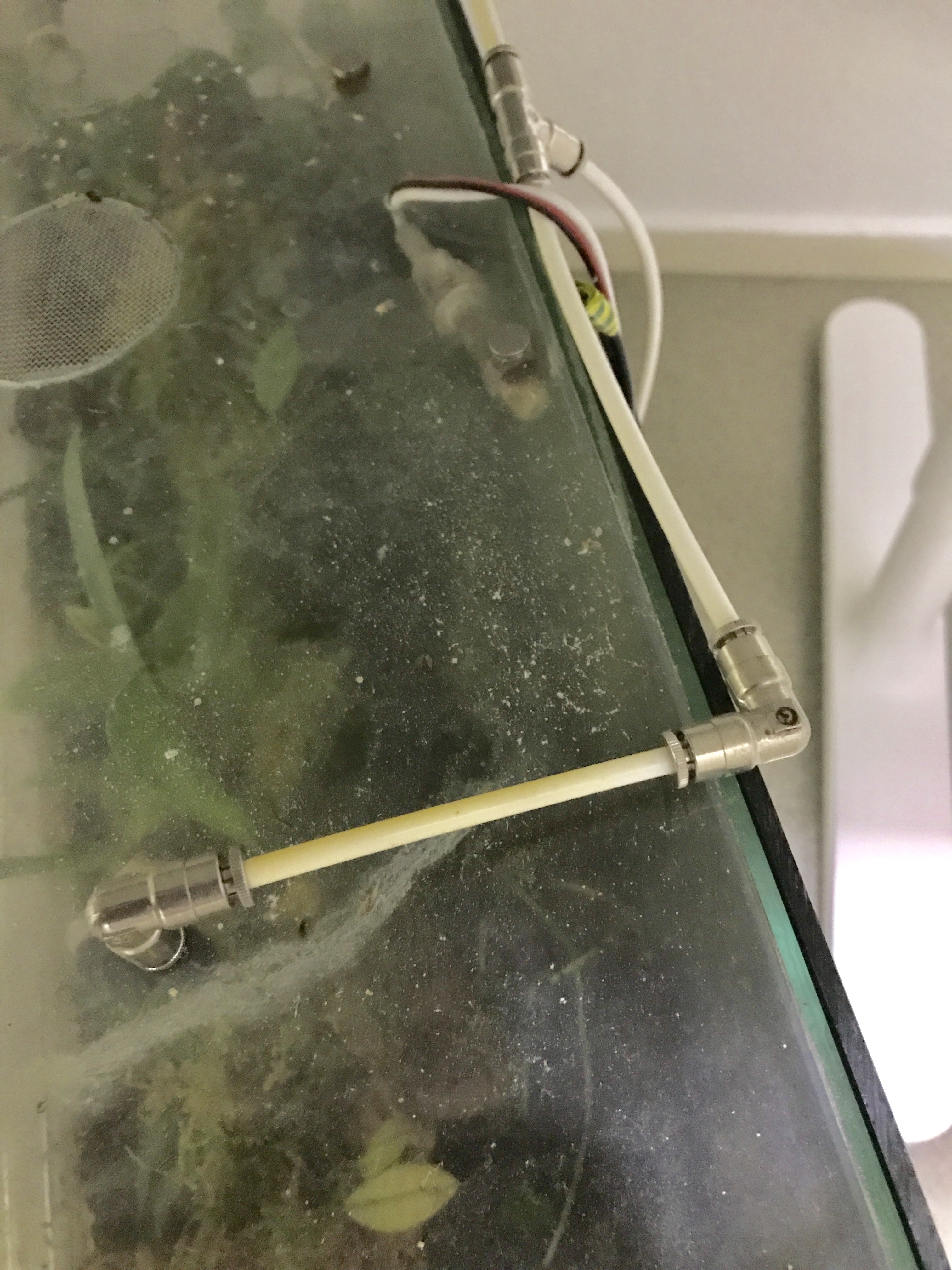 Har även kollat på gamla systemet till mitt lilla terrarium och de metalfärgade kopplingarna å vita slangen. Blir nog sådana kopplingar, men grå/metalfärgad slang. Lika bra att bygga snyggt och precis som jag vill ha det på en gång.
