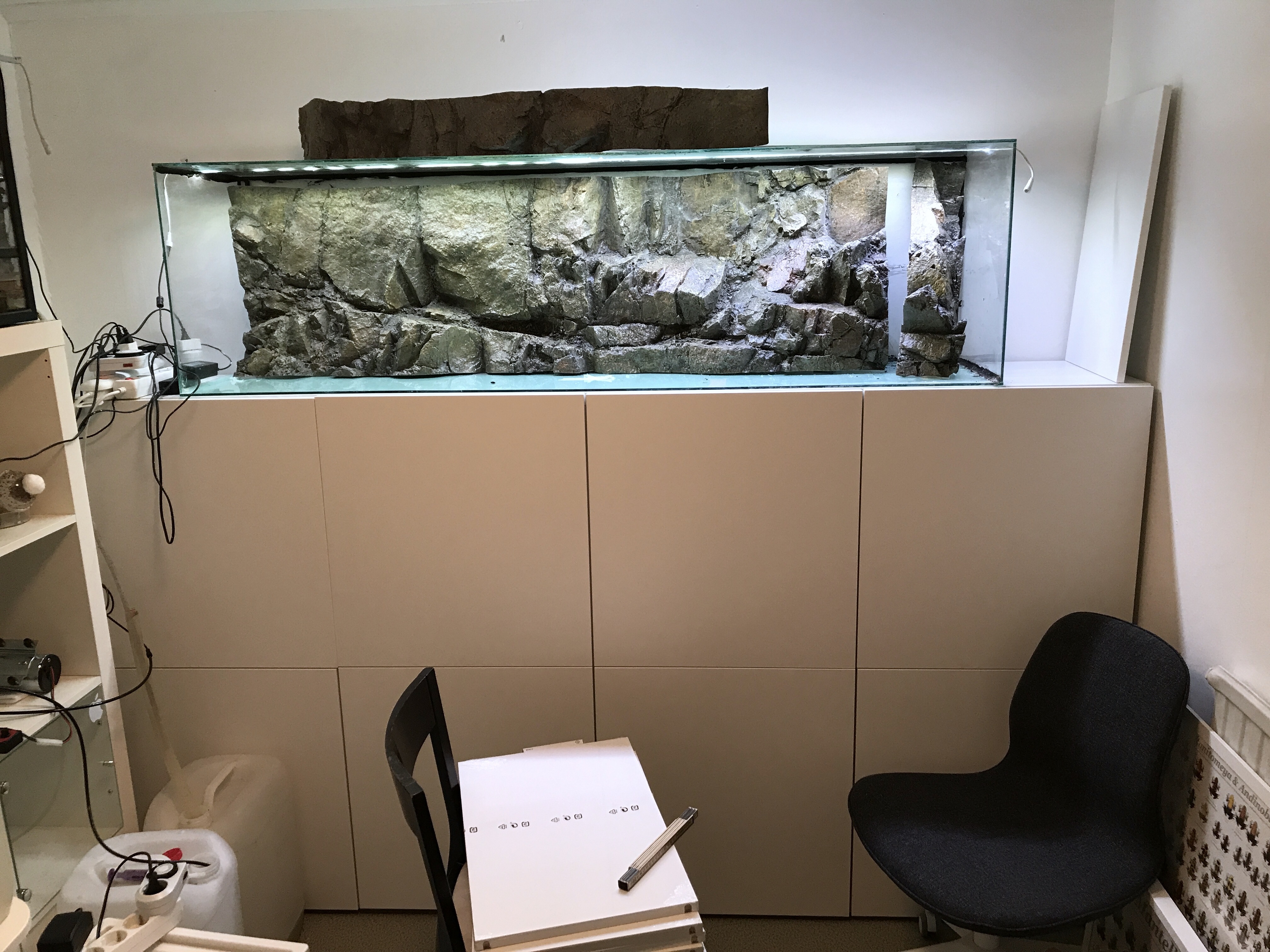 Hann även borra ett 27mm hål i botten idag och testa genomföring för avrinning. Ska köpa ett filter och lite rördelar ner till sumpen sen.