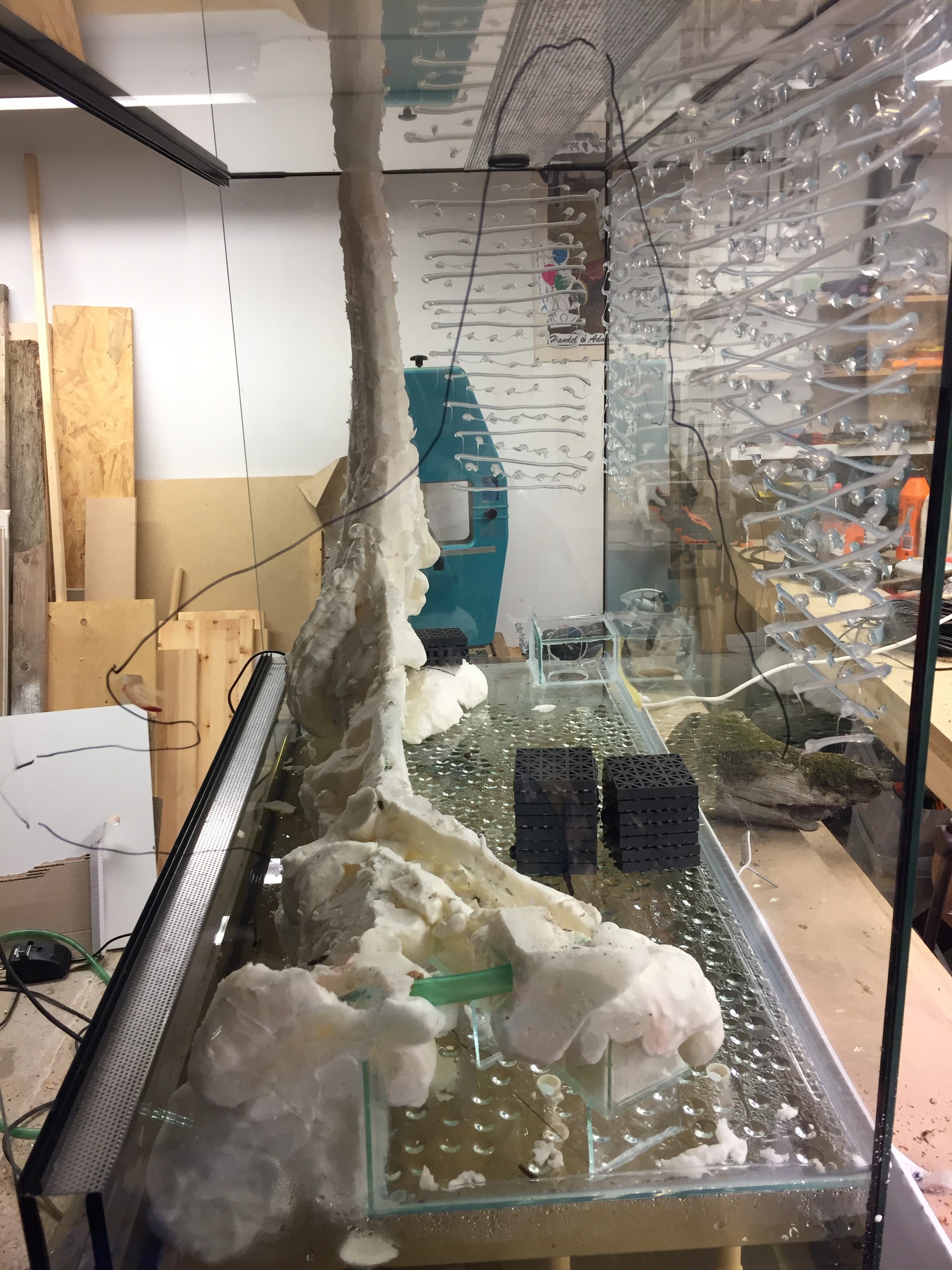 Experimenterar med fler buttress rötter samt stenar i och omkring bäcken